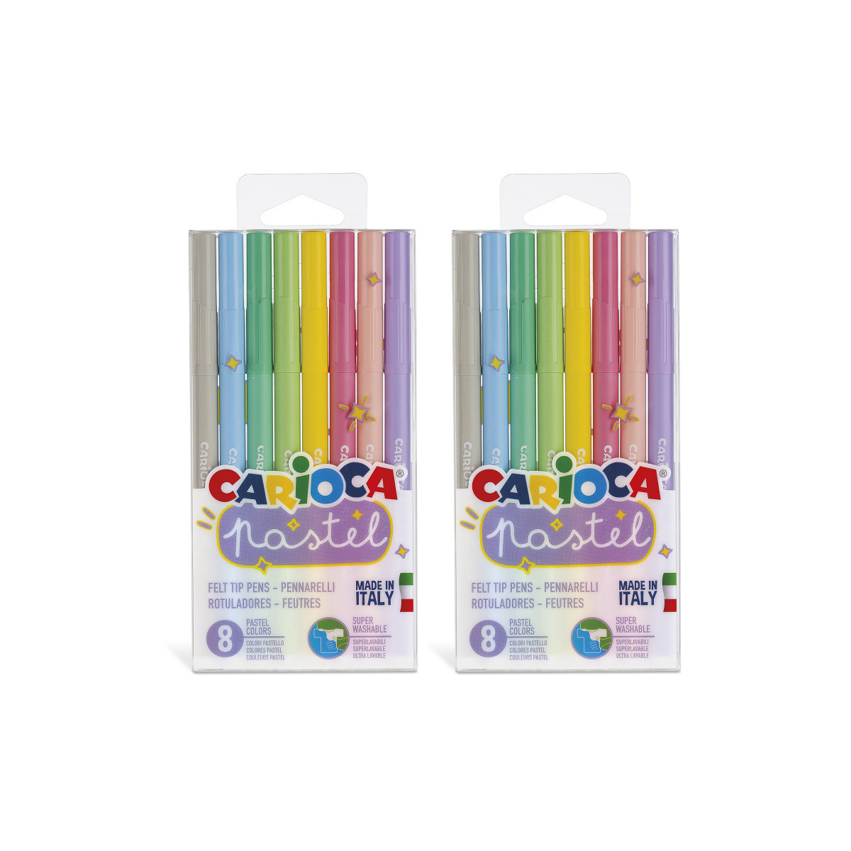 The Carioca Pastel Felt Tip Pens – 8 Pieces set brings a soft and stylish touch to your art with beautiful pastel shades perfect for coloring, highlighting, and creative projects. Designed with nontoxic, super washable ink that can be removed from skin using only water, these pens are both safe and practical. The blocked conical tip offers versatility, allowing both fine and broad strokes, while the ventilated cap ensures added safety. Crafted in Italy with quality and care, these pastel markers combine gentle colors, durability, and ease of use for artists of all ages. Each pack includes 8 markers. Sold as 2 packs for a total of 16 markers.