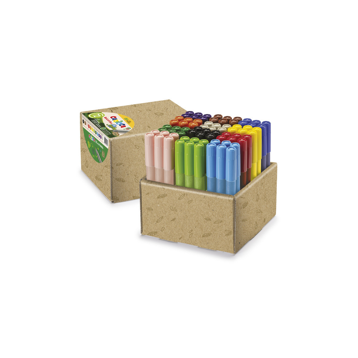 The Carioca Eco Family Jumbo Maxi Tip Felt Tip Pens – 72 Pieces are perfect for classrooms that prioritize both creativity and sustainability. These eco-friendly markers are made from 74% recycled plastic, produced from recycled polylaminated waste, offering an environmentally responsible choice for schools. The super washable ink ensures easy cleanup, while the maxi blocked 6 mm tip provides bold, consistent lines for larger projects and creative activities. With ventilated caps for added safety and vibrant, long-lasting colors, this set of 72 markers is ideal for group use in classrooms. Made in Italy, these markers combine quality, safety, and eco-conscious design in one complete school pack.