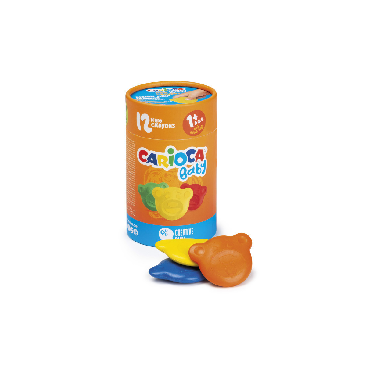 Introduce your little ones to the joy of drawing with Carioca BABY Teddy Crayons – 12 Pieces. Specially designed for children from 12 months, these crayons help develop early digital grip skills while encouraging creative expression. Each crayon is uniquely shaped to fit comfortably in small hands, making the first experiences of drawing easier and more enjoyable. Additionally, every color is associated with a specific emotion, adding a playful and educational dimension to coloring activities. The set comes in a convenient tube, keeping all 12 crayons organized and ready for fun.