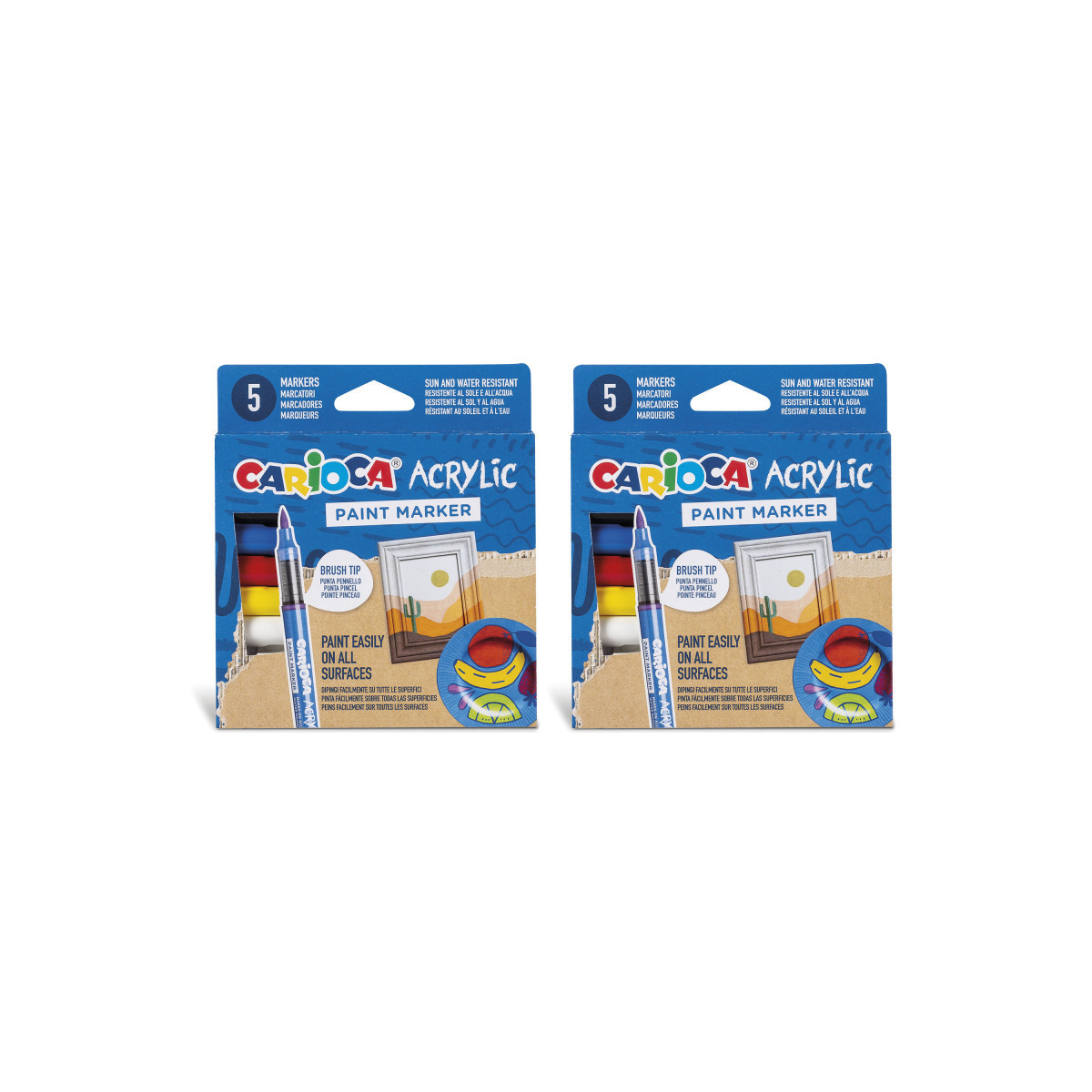 The Carioca Acrylic Paint Markers – 5 Pieces are perfect for artists and crafters looking for versatility and ease of use. Each marker features an artistic brush tip that stays moist and ready to use without any activation, allowing for smooth, expressive strokes. The high-opacity, water-based ink works beautifully on a wide variety of surfaces including wood, glass, metal, stone, ceramics, and cardboard. These markers are ideal for creating vibrant, long-lasting designs with precision and control, whether for home projects, school crafts, or professional artwork. The set comes in a convenient box of five, providing a selection of colors to bring any creative idea to life. Each pack includes 5 markers. Sold as 2 packs for a total of 10 markers.