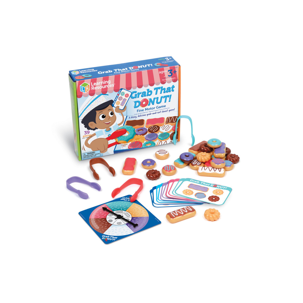 Discover the deliciously entertaining "Grab That Donut!" Fine Motor Game from Learning Resources, where preschoolers race to complete their sweet orders! This captivating educational game for 1-4 players combines fun with essential skill development as children use colorful tongs to pick up mini-donuts and match them to their order cards. Players spin the spinner, then carefully select donuts by color, frosting, or decoration - the first to complete their card wins! More than just entertaining play, this thoughtfully designed game helps children build crucial school-readiness skills, developing hand coordination, grip strength, and fine motor control while learning sorting, matching, and turn-taking. The box cleverly doubles as both a donut shop display and convenient storage solution for the 24 vibrant donuts, 4 sets of tongs, order cards, and spinner. Perfect for family game nights or classroom activities, "Grab That Donut!" joins Learning Resources' 40-year tradition of creating educational toys that inspire success through play. Every component is crafted from durable material for years of learning fun. Whether children are recognizing patterns, practicing patience, or strengthening hand muscles, they're building foundational skills that extend beyond the game.