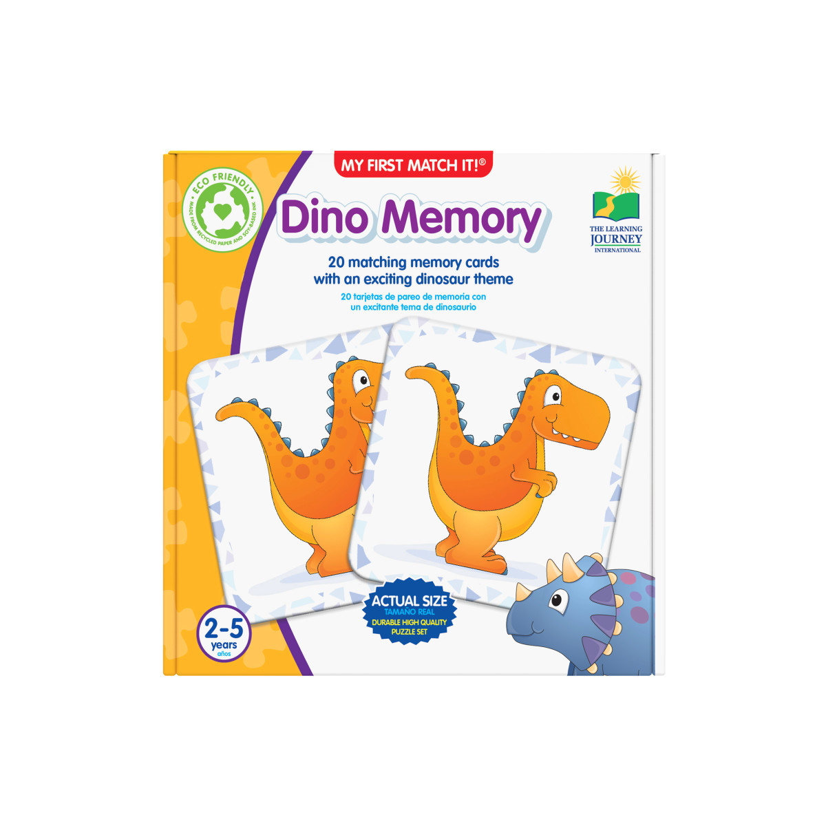 Expanding memory and object recognition skills in a young child will help prepare them for their school years yet to come. My First Memory Game is a great educational tool designed to help build these skills prior to the start of their formal school years. Learn about prehistoric dinosaurs as children match the pictures together using these fun cards. The fun, happy dinosaur pictures are illustrated in a way to keep children engaged in the learning process. Each My First Memory Game – Dino's includes 20 matching memory cards. Ages 2+ years.