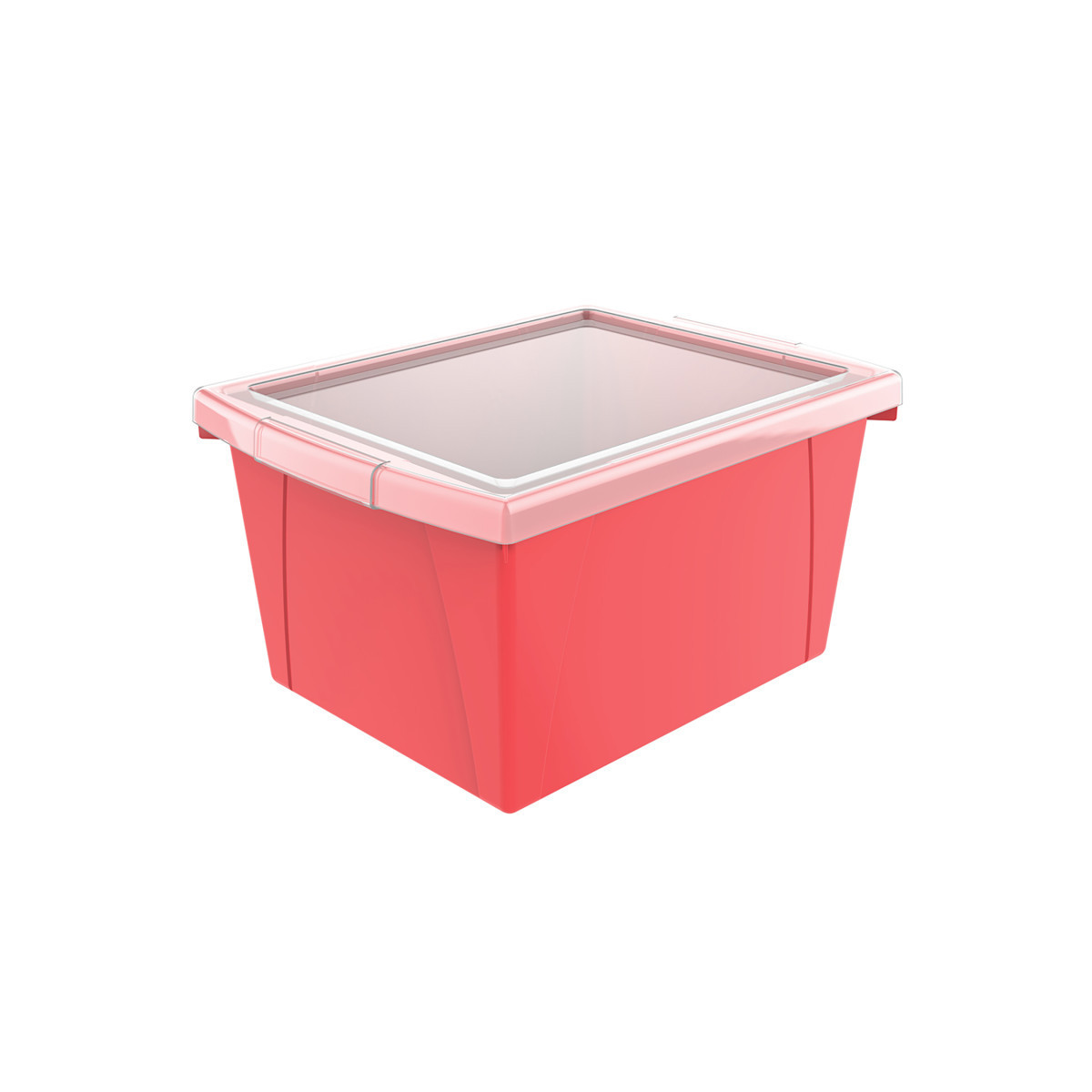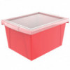 These storage bins are the ultimate companion for your bookshelf or cubby. The easy to grip handles are perfectly sized for big and small hands. They are made of impact resistant plastic and come in wonderfully bright colors. Use them to organize your room and store all your supplies. Clear snap on lid is included.