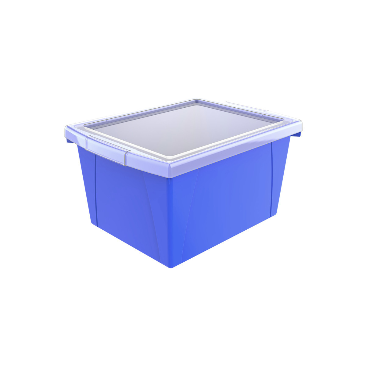 These storage bins are the ultimate companion for your bookshelf or cubby. The easy to grip handles are perfectly sized for big and small hands. They are made of impact resistant plastic and come in wonderfully bright colors. Use them to organize your room and store all your supplies. Clear snap on lid is included.