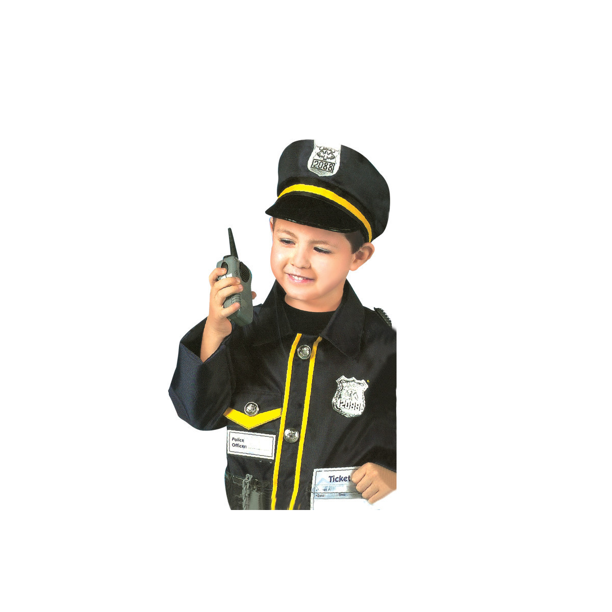 - Complete Police Set – Includes coat, hat, badge, whistle, walkie talkie, and handcuffs.