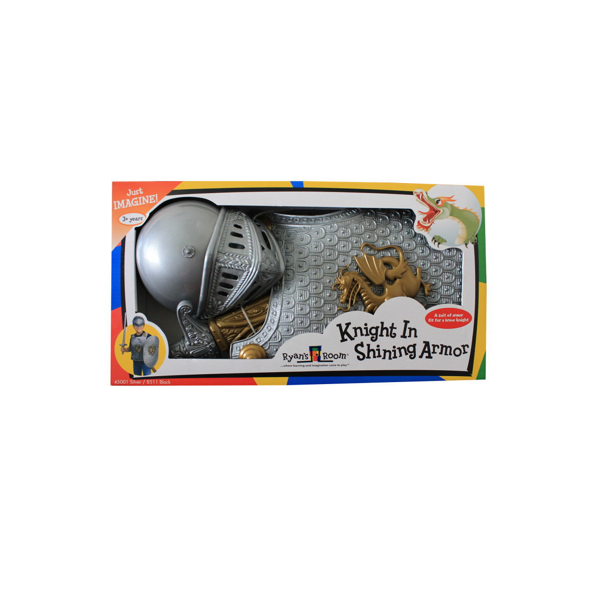 Defend the kingdom in style with the Ryan’s Room® Knight in Shining Armor Dress-Up Costume – Silver! This 4-piece set has everything a brave knight needs for imaginary battles and epic quests, including a helmet, breastplate, sword, and shield—all made of soft plastic for safe, comfortable play. Whether charging into a pretend joust or guarding the castle gates, kids will love stepping into the role of a fearless hero. Perfect for ages 3 and up, this costume encourages imaginative storytelling and active role play, making it a great choice for home dress-up corners, school activities, or themed parties.
