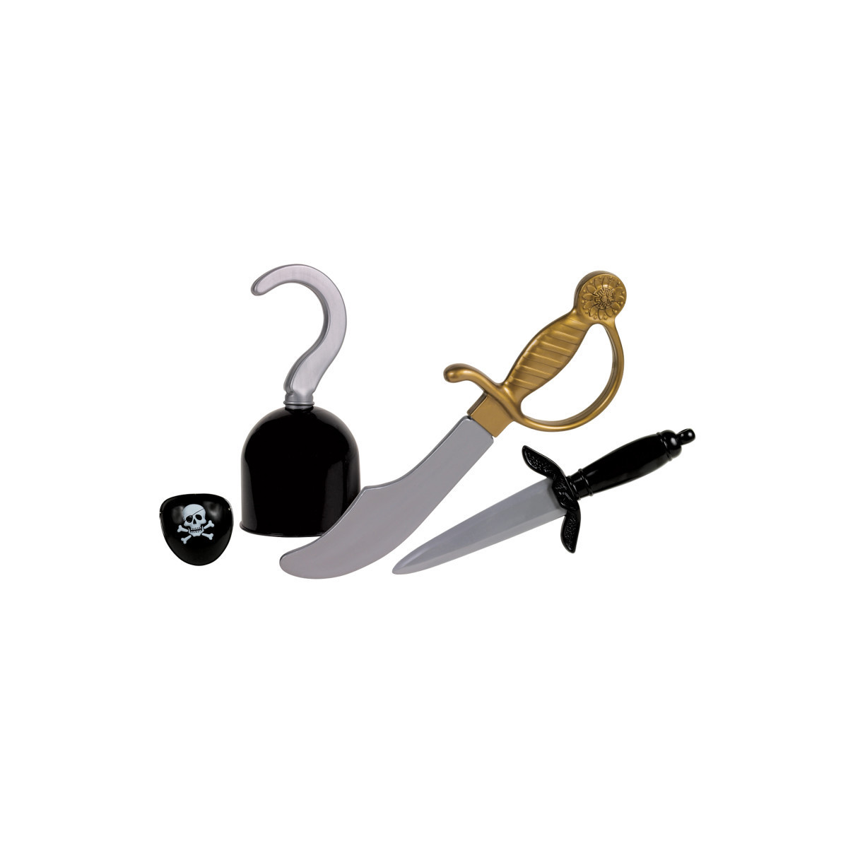 - Complete Pirate Accessory Set – Includes dagger, eye patch, hook, and 13" sword.