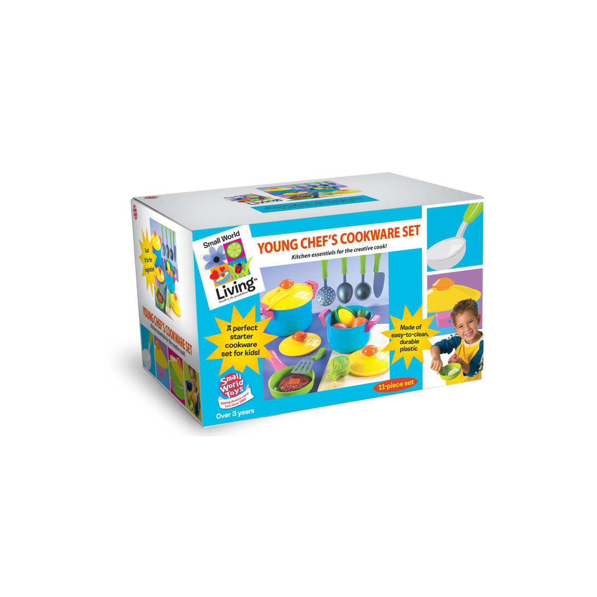 Let your little chefs whip up delicious pretend meals with the Small World Toys Young Chef’s Cookware 11-Piece Playset! This colorful, lightweight set features all the essential cookware pieces kids need to create culinary masterpieces. Made from easy-to-clean plastic, the set includes large and small stockpots with lids, a frying pan with lid, and essential utensils like a large spoon, knife, skimmer, spatula, and ladle. Perfect for children ages 3 and up, this playset encourages imaginative role play, fine motor skill development, and a love for cooking. Part of the Small World Living™ collection, it’s an ideal way to inspire creativity and healthy lifestyle habits through play.