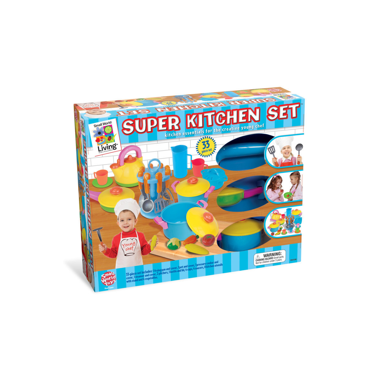 Equip your little chef with everything they need to cook up a storm with the Small World Toys Young Chef’s Super Kitchen 33-Piece Playset! This comprehensive set features all the kitchen essentials made from durable, easy-to-clean plastic, perfect for imaginative cooking adventures. From pots and pans with covers to pitchers, cups, saucers, utensils, and even play vegetables, this set encourages creativity and role play while teaching kids about healthy eating. Designed for children ages 3 and up, it’s an ideal starter cookware set that inspires hands-on learning and fun in the kitchen. Part of the Small World Living™ collection, it’s a fantastic way to blend education and play.