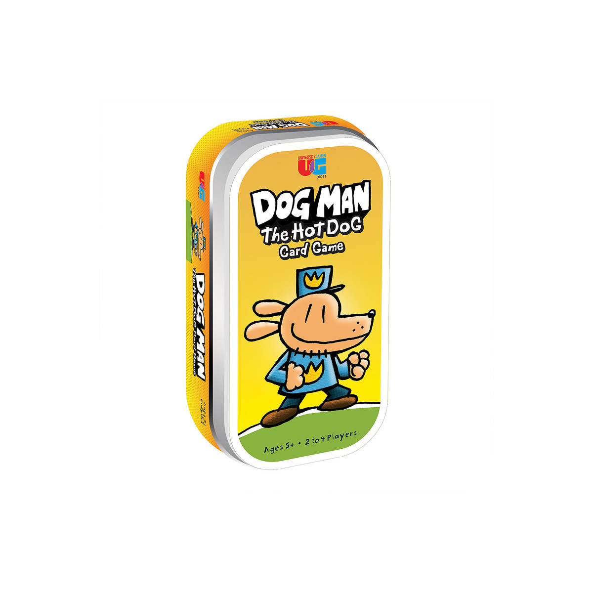 Get ready for a sizzling adventure with the Dog Man Hot Dog game – the ultimate game for Dog Man lovers and hot dog fans alike! Step into the paws of Dog Man, the beloved half-dog, half-man hero, as he chased hot dogs. Petey sprayed all the hot dogs with 'living spray' and they all came to life. Dog Man LOVES Hot Dogs. The player who collects the most hot dogs wins in this fun card game based on the popular book series by Dav Pilkey. With colorful graphics, exciting gameplay, and a dash of humor, the Dog Man Hot Dog game is perfect for kids and families who enjoy a good challenge and a lot of laughs. The Dog Man Hot Dog game is perfect for game night and designed for 2 to 4 players, ages 5 and up. Enclosed in a travel size tin, this game is not only entertaining but also convenient for on-the-go play during trips or outings. For 2-4 players, ages 5 and up.