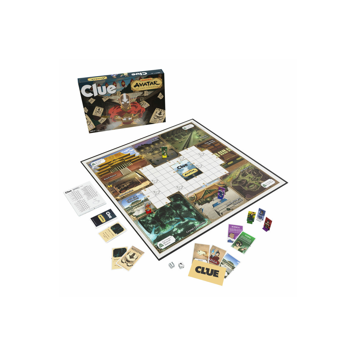 - Includes custom board, movers, cards, tokens, dice, and Clue sheets themed to the Avatar universe