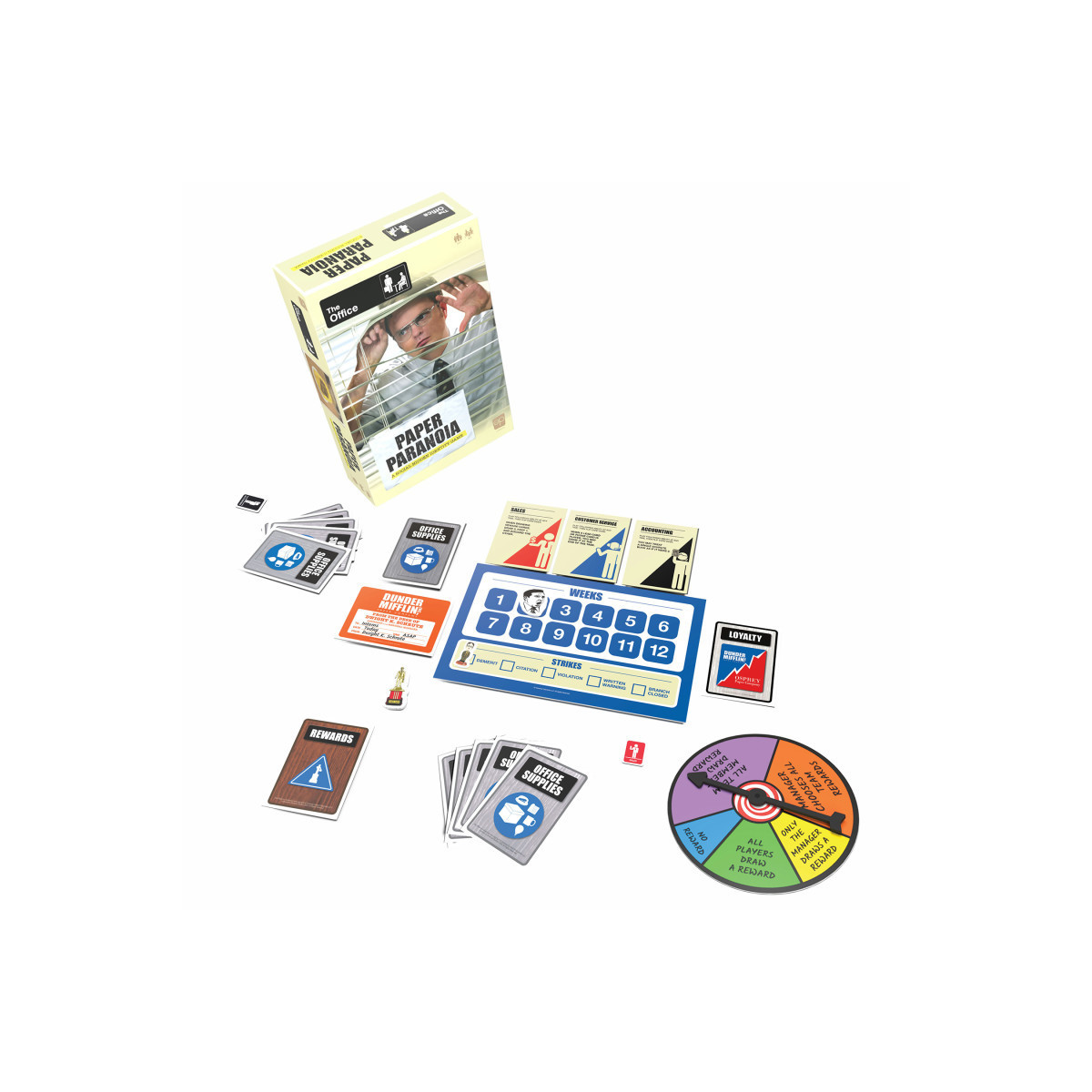 Features 199 cards, a chore wheel, and tokens inspired by The Office, making every playthrough unique and unpredictable.