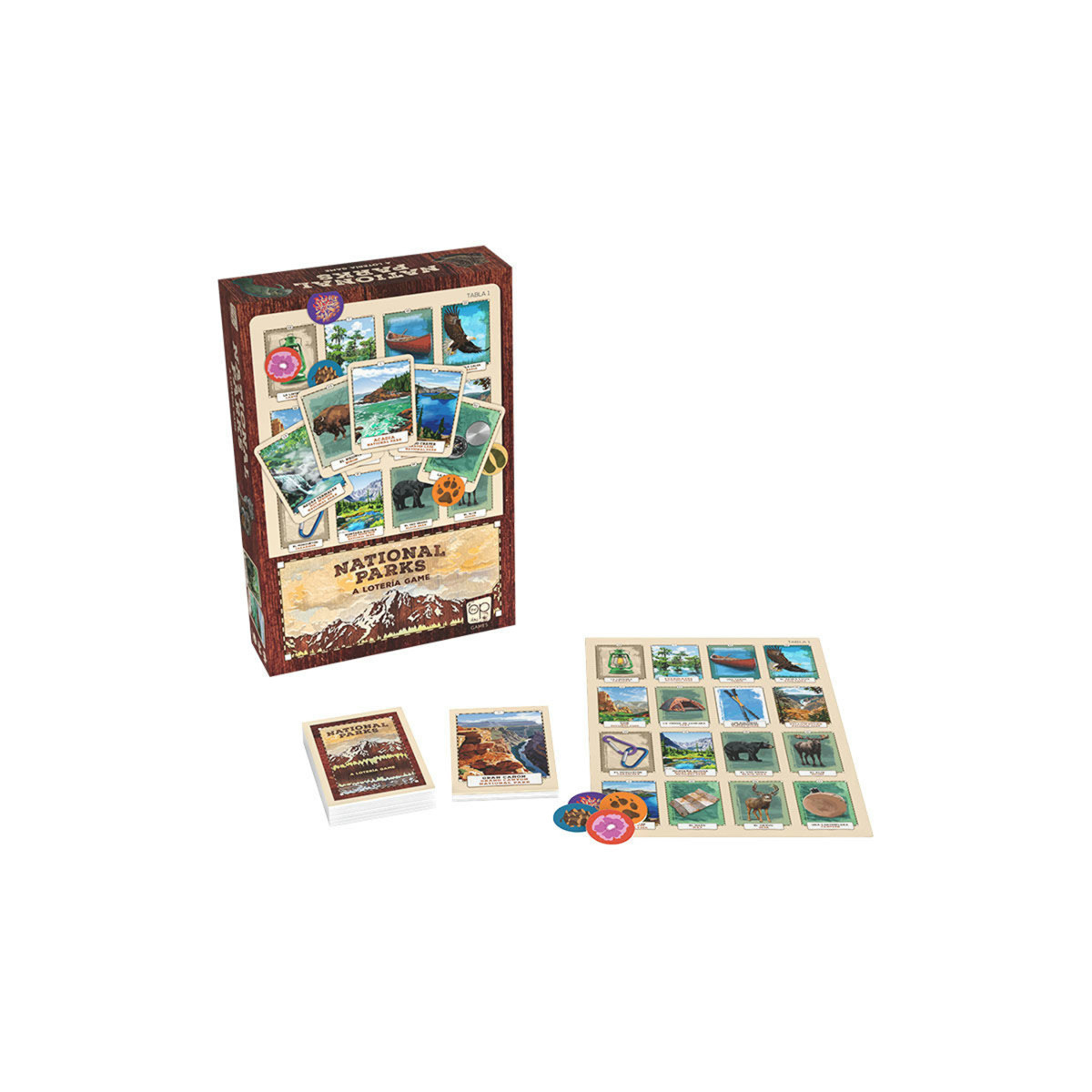 Gather around for fun and fortune with National Parks: A Lotería Game! Join the adventure with your favorite national parks animals, items, and places and get ready to play in this English-Spanish version of Bingo. Players will create rows or patterns out of matching images on their tablas to win! Let luck and learning charm the whole family with this unpredictable and educational game for national parks fans of every generation!