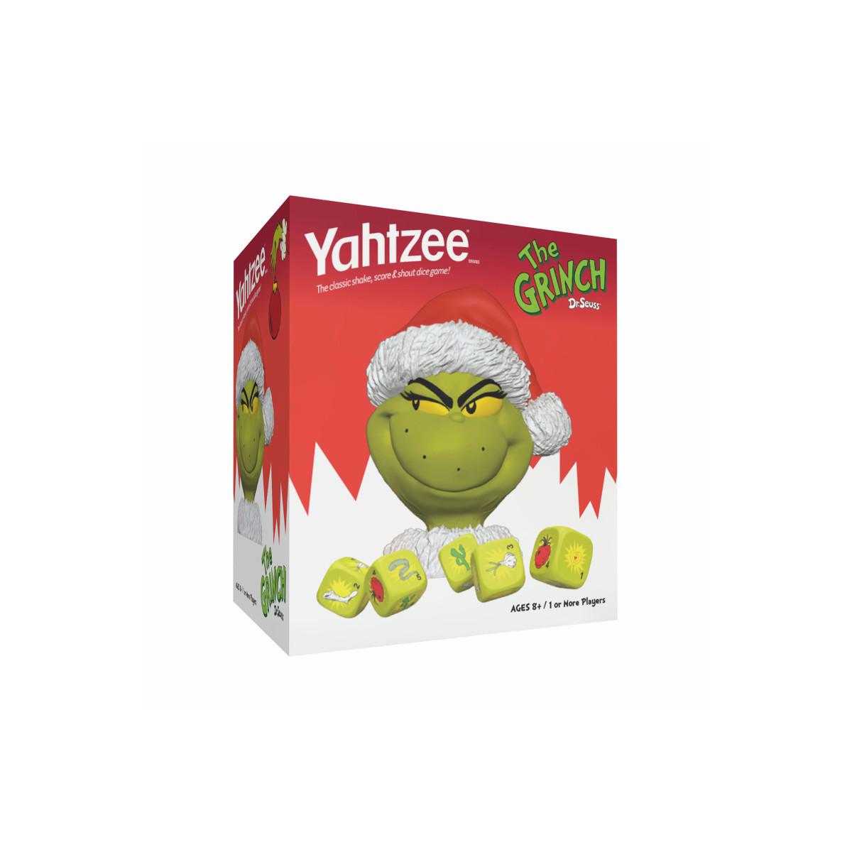 You're a mean one… but can you roll a Yahtzee? Shake up holiday mischief with a custom Grinch dice cup and bright green dice featuring classic icons from the beloved Dr. Seuss tale.