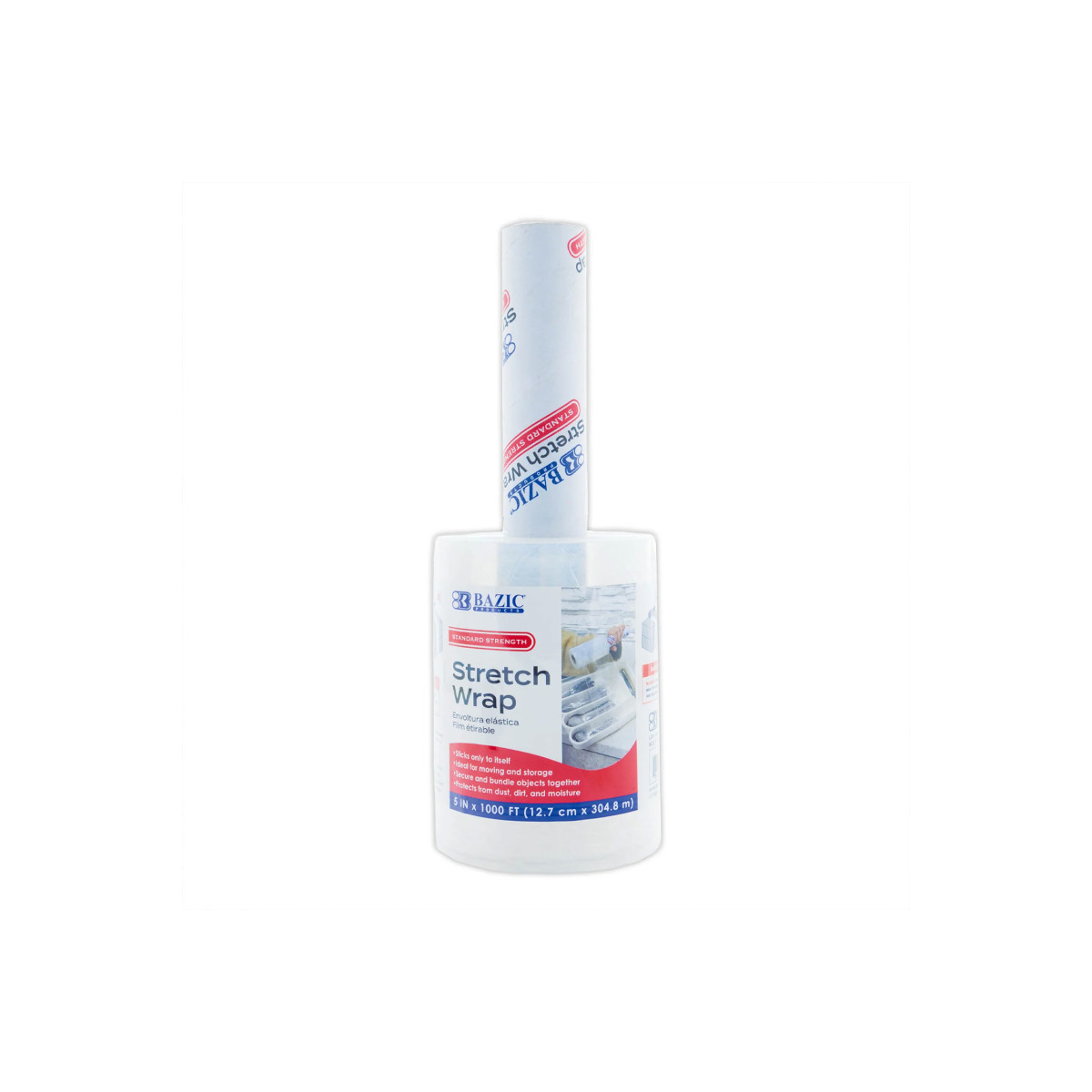 Make packing and protecting your items easier than ever with this high-quality stretch wrap film featuring a built-in convenient handle. Designed for ease of use, the handle offers a secure grip, allowing for fast and efficient wrapping without the need for additional tools or tape. Crafted from durable, flexible plastic, this wrap delivers standard strength to securely bundle your items while resisting tears and punctures. The self-adhering film clings only to itself, ensuring a tight seal without leaving sticky residue behind. Each roll measures 5 inches wide by 1000 feet long—plenty of coverage for moving, storage, or shipping. Whether you're packing up for a big move or securing inventory for shipment, this versatile stretch wrap has you covered.