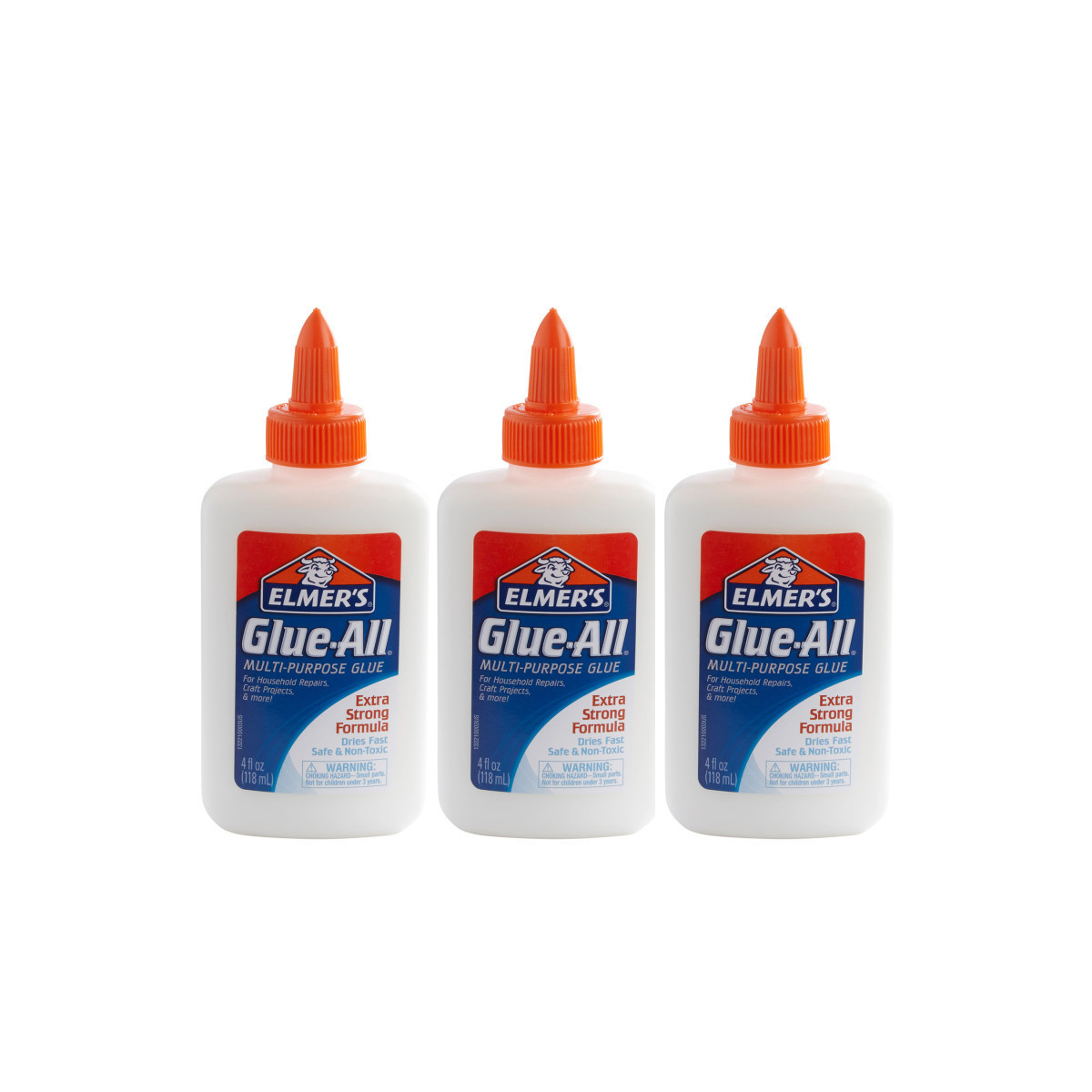 Permanently attach items to paper, fabric, wood, ceramics, leather, and more with the non-toxic adhesive of Elmer's Extra Strong Glue-All Multi-Purpose Glue. Ideal for household jobs, crafts, and school projects, Elmer's Glue-All bonds strongly and dries quickly, and can handle kitchen repairs, workshop and garage work, and other demanding applications. You can also use your liquid glue to create glue slime! Sold as a pack of 3 bottles.