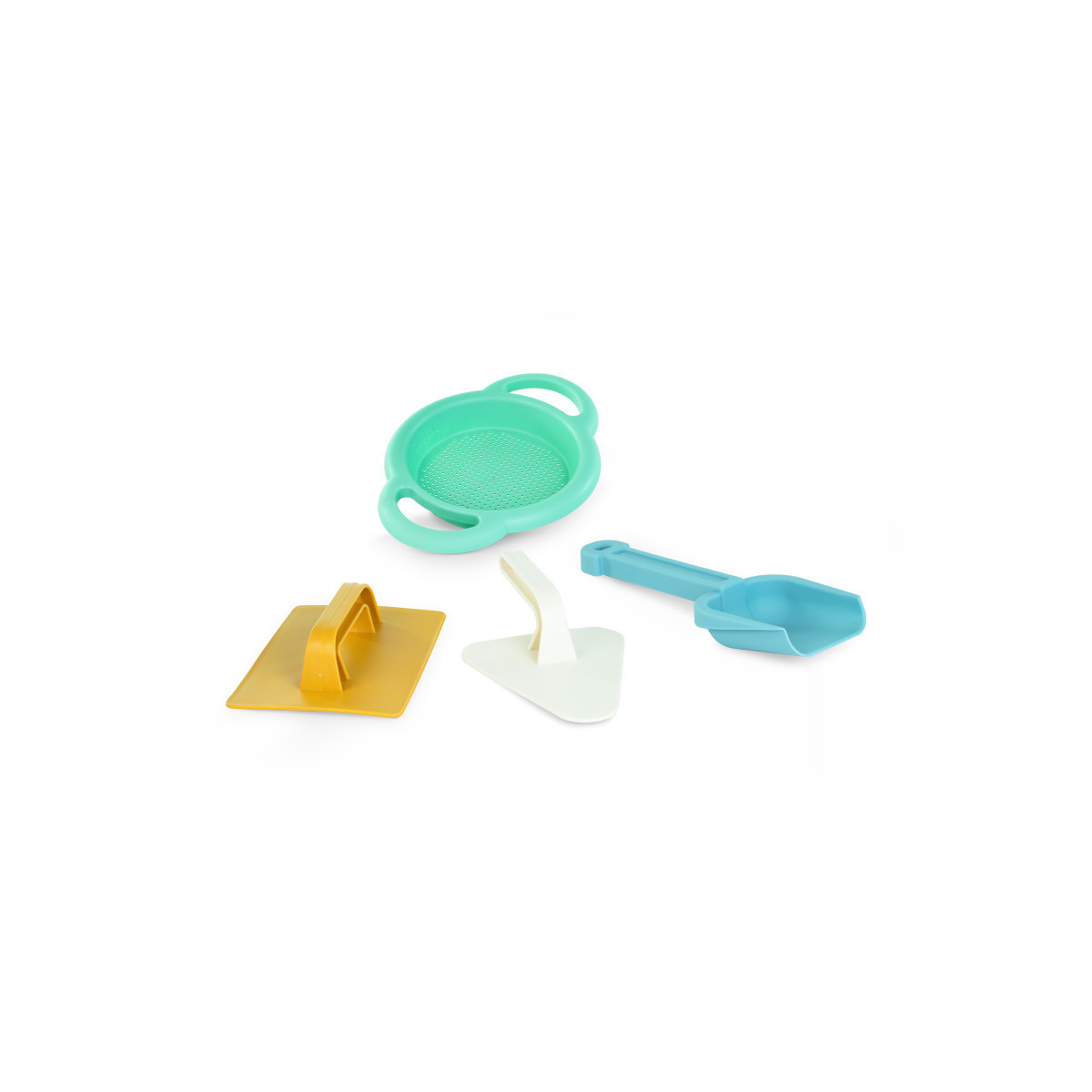 This complete set of sand and snow toys is perfect for little ones to enjoy outdoor play while developing their imagination and motor skills. Made with recycled plastic, it combines fun and sustainability, promoting care for the environment from an early age. The set includes a sieve, a shovel, a trowel and a spatula, all designed to withstand continuous use and ensure maximum durability. Plus, the pieces store conveniently in the cube, keeping everything organized and ready to transport. Especially suitable for collective play, this set is ideal for children to share moments of fun on the beach, the park or even in the snow. A practical and ecological option that turns every day of play into an experience full of learning and creativity. A must for little explorers.