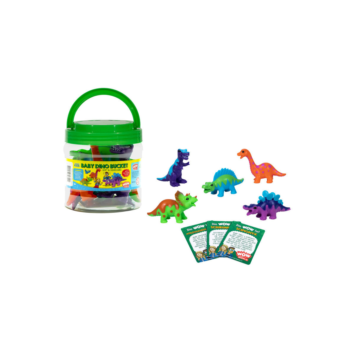 Introduce your little ones to the wonders of dinosaurs with our Bucket of 5 Baby Dinosaurs! Each adorable figurine is meticulously detailed and sized just right for small hands. This set comes with WOW Dinosaur fact cards and QR codes for WOW podcasts, making it a perfect blend of fun and learning for young explorers.