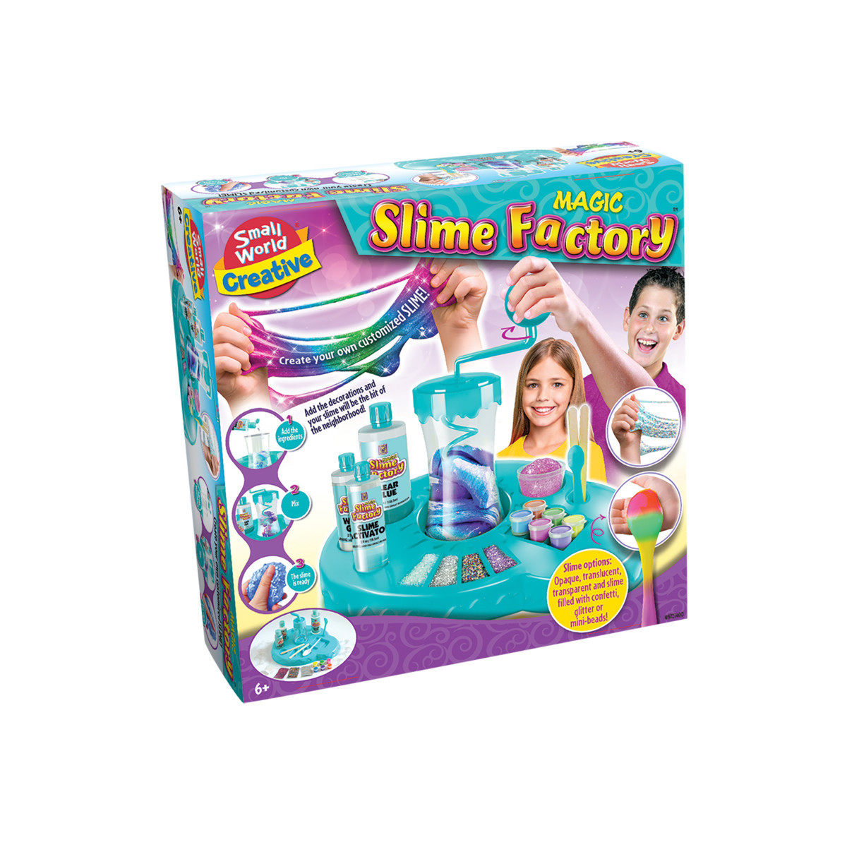 Mix, stretch, and play with your own creations using the Magic Slime Factory, a complete DIY slime-making kit for kids ages 6 and up. This fun and hands-on craft set lets children create customized slime in different textures and colors, then add decorations to make each batch truly unique. Perfect for sensory play and imaginative fun, the Magic Slime Factory includes all the supplies and detailed instructions needed for a mess-free, exciting slime experience. Kids will love showing off their creations and enjoying hours of squishy, stretchy fun.