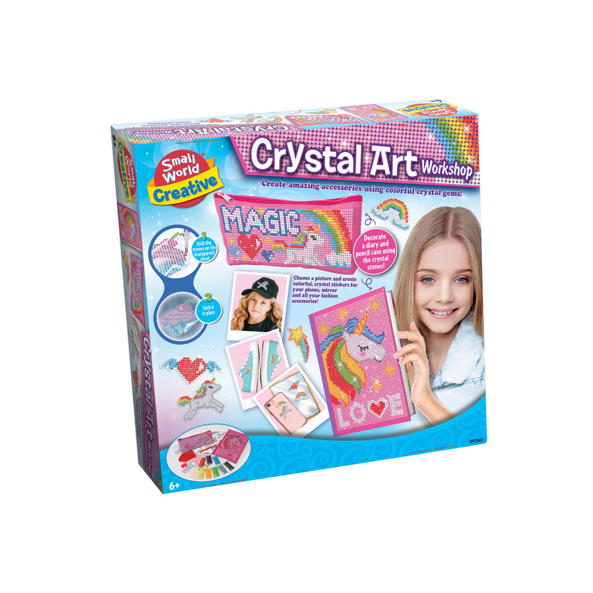 Add sparkle to everyday items with the Crystal Art Workshop, a fun DIY craft kit designed for kids ages 6 and up. This creative set allows children to design colorful crystal stickers using vibrant gems and apply them to phones, mirrors, diaries, pencil cases, and more. With step-by-step instructions and all supplies included, kids can easily create dazzling accessories and personalized decorations. Perfect for enhancing creativity and fine motor skills, the Crystal Art Workshop turns ordinary objects into shimmering works of art that kids will be proud to show off and share.