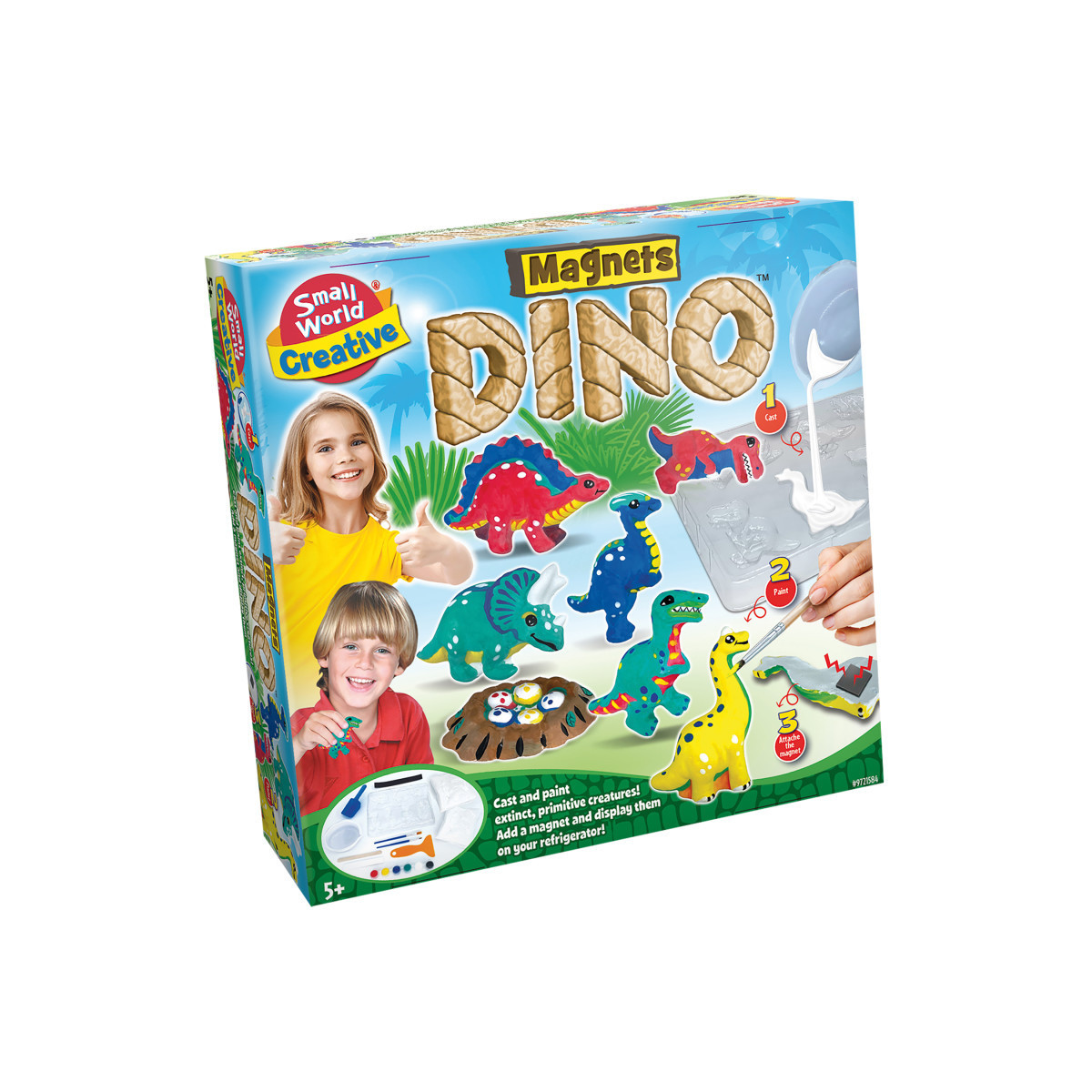 Bring prehistoric fun to life with the Magnets Dino Kit, a hands-on craft set that lets kids cast, paint, and display their very own dinosaur creations. Using the included molds and paints, children can design colorful replicas of extinct creatures, then attach magnets to showcase their artwork on the refrigerator or any magnetic surface. Designed for ages 5 and up, this all-in-one kit includes everything needed along with easy-to-follow instructions, making it a fun and educational activity that sparks creativity and a love for dinosaurs.