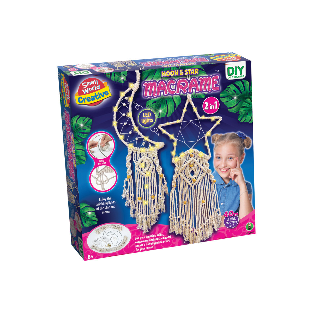 Add a touch of boho charm to your space with the Moon & Star Macrame Kit, a creative DIY craft set for kids ages 7 and up. Using cotton cord, knotting techniques, and special beads, children can design and assemble a stunning moon-and-star wall hanging that glows with twinkling lights. This all-in-one kit includes everything needed, plus easy-to-follow instructions, to make a decorative piece of art that’s perfect for bedrooms or playrooms. A fun project that combines hands-on crafting with beautiful room décor, this kit encourages creativity, patience, and design skills.