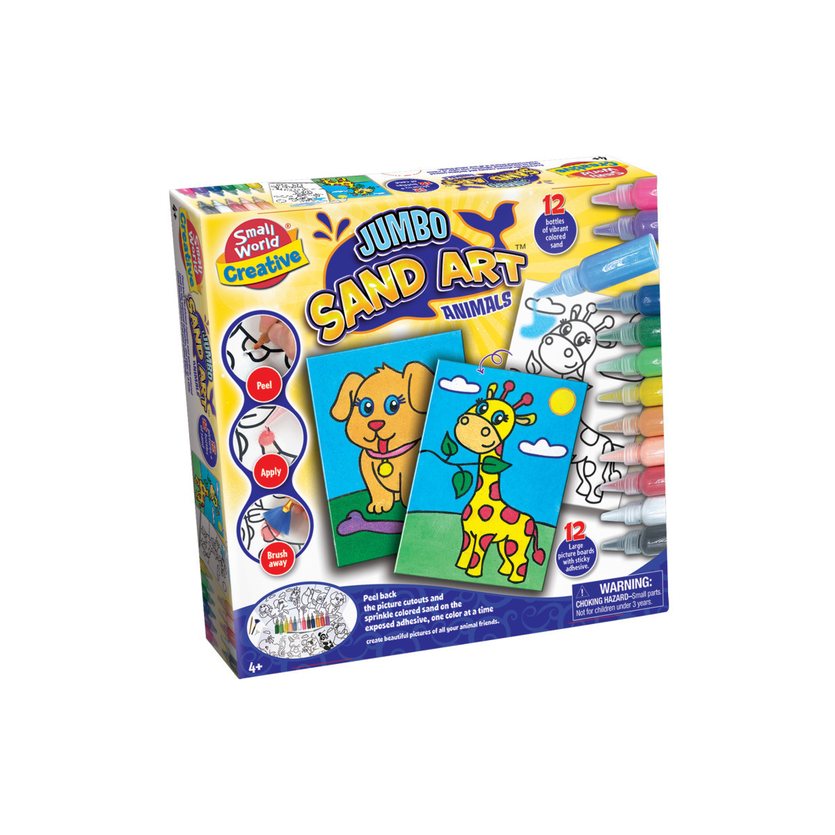 Discover hours of colorful, hands-on fun with the Jumbo Sand Art Animals Kit, a creative craft set designed for kids ages 4 and up. Children can easily peel back picture cutouts and sprinkle vibrant sand onto the adhesive boards, one color at a time, to reveal stunning animal designs. With 12 bottles of bright colored sand and 12 large adhesive boards, this kit provides everything needed to make multiple sand art creations. Easy to use and mess-friendly, the Jumbo Sand Art Animals Kit encourages creativity, patience, and fine motor skills while giving kids beautiful artwork to display or share.