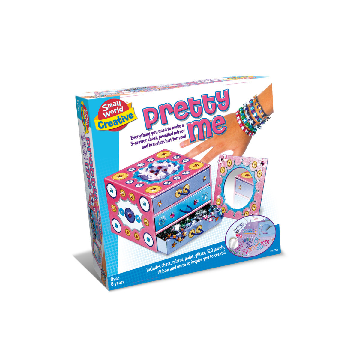 Unleash your inner designer with the Pretty Me Jewelry Box Kit, a creative DIY set perfect for kids ages 8 and up. This kit allows children to decorate a 3-drawer jewelry box and matching mirror to reflect their personal style using vibrant paints, glitter, and accessories. With over 300 colorful gems, ribbons, and clasps, kids can also make unique bracelets to match their custom jewelry box. The jewelry box and mirror are easy-to-assemble and made of durable cardboard, ensuring a long-lasting, display-worthy project. Complete with all supplies and step-by-step instructions, this kit encourages creativity, fine motor skills, and imaginative fashion design.