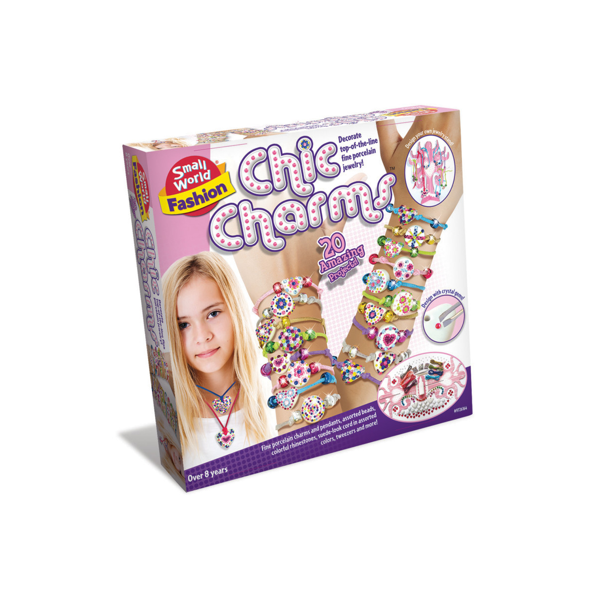 Elevate your jewelry-making skills with the Chic Charms Jewelry Kit, a creative DIY set perfect for kids ages 8 and up. This stylish kit lets children decorate fine porcelain charms and pendants using crystal gems, colorful rhinestones, and glue to create elegant, personalized jewelry. The set also includes assorted beads, suede-look cords, tweezers, and more to design necklaces, bracelets, and pendants. Young artists can even assemble and decorate a jewelry stand to showcase their creations. With all supplies included, the Chic Charms Jewelry Kit encourages creativity, fine motor skills, and hands-on fashion fun.