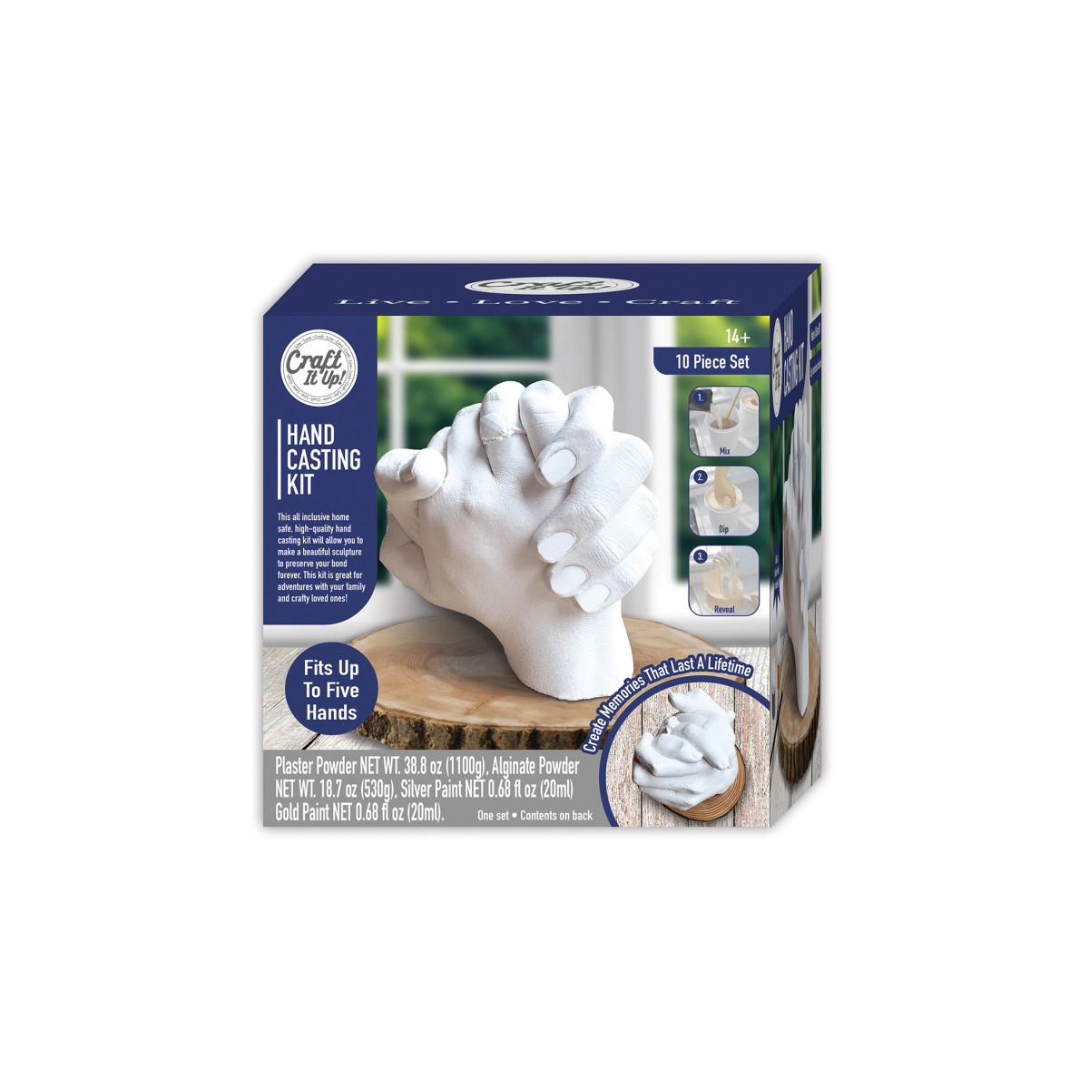 Create a keepsake you'll treasure forever with this Hand Casting Kit, a beginner-friendly set that makes it easy to craft a beautiful 3D sculpture of you and your loved ones. Perfect as a romantic anniversary gift for couples, or a fun activity to share with family and friends, this kit includes everything you need to preserve life-like details in a stunning plaster cast. The bucket is large enough to fit up to five hands, making it an ideal project for couples, parents and children, or groups. Once the sculpture has cured, add a finishing touch with the included metallic silver and gold paints for a personalized, lasting piece of art. Whether for yourself or as a heartfelt gift, this hand mold kit creates a memory you'll proudly display for years.