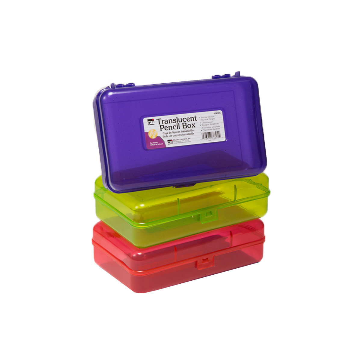 Keep your school supplies organized and within reach with this spacious and stylish pencil box. Measuring 8-1/4" wide, 5-1/4" deep, and 2-1/2" high, it offers plenty of room to hold pens, pencils, markers, erasers, and more. The translucent design comes in assorted vibrant colors, allowing you to easily see the contents from any angle without opening the lid. Durable and practical, this pencil box is perfect for students, teachers, or anyone needing a tidy storage solution. Sold as a pack of 3 in assorted colors (color selection is random; no color choice available).