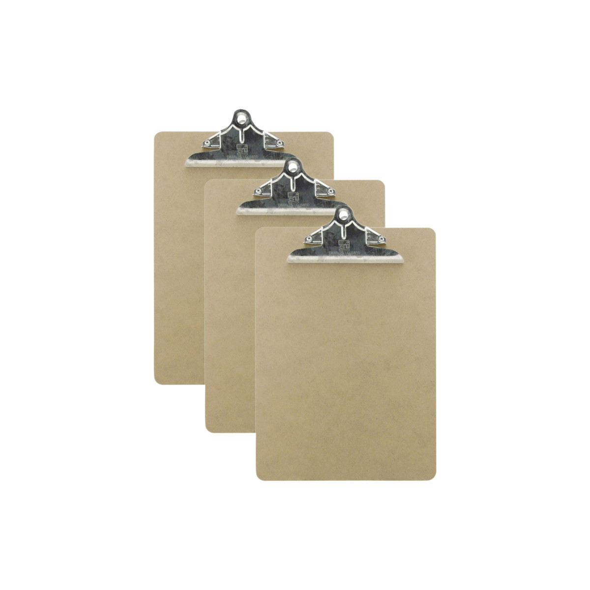 Take your work anywhere with this durable double-sided masonite clipboard. Made from sturdy 1/8" thick masonite hardboard, it's designed to provide a stable writing surface whether you're at your desk or on the go. The clipboard features smooth, beveled edges for added comfort and safety during use. A 6-inch metal clip with a high-tension spring ensures a secure grip, keeping your documents firmly in place. Ideal for classrooms, job sites, offices, or everyday tasks, this letter-size clipboard is a reliable and portable solution for writing on the move. Sold as a pack of 3.