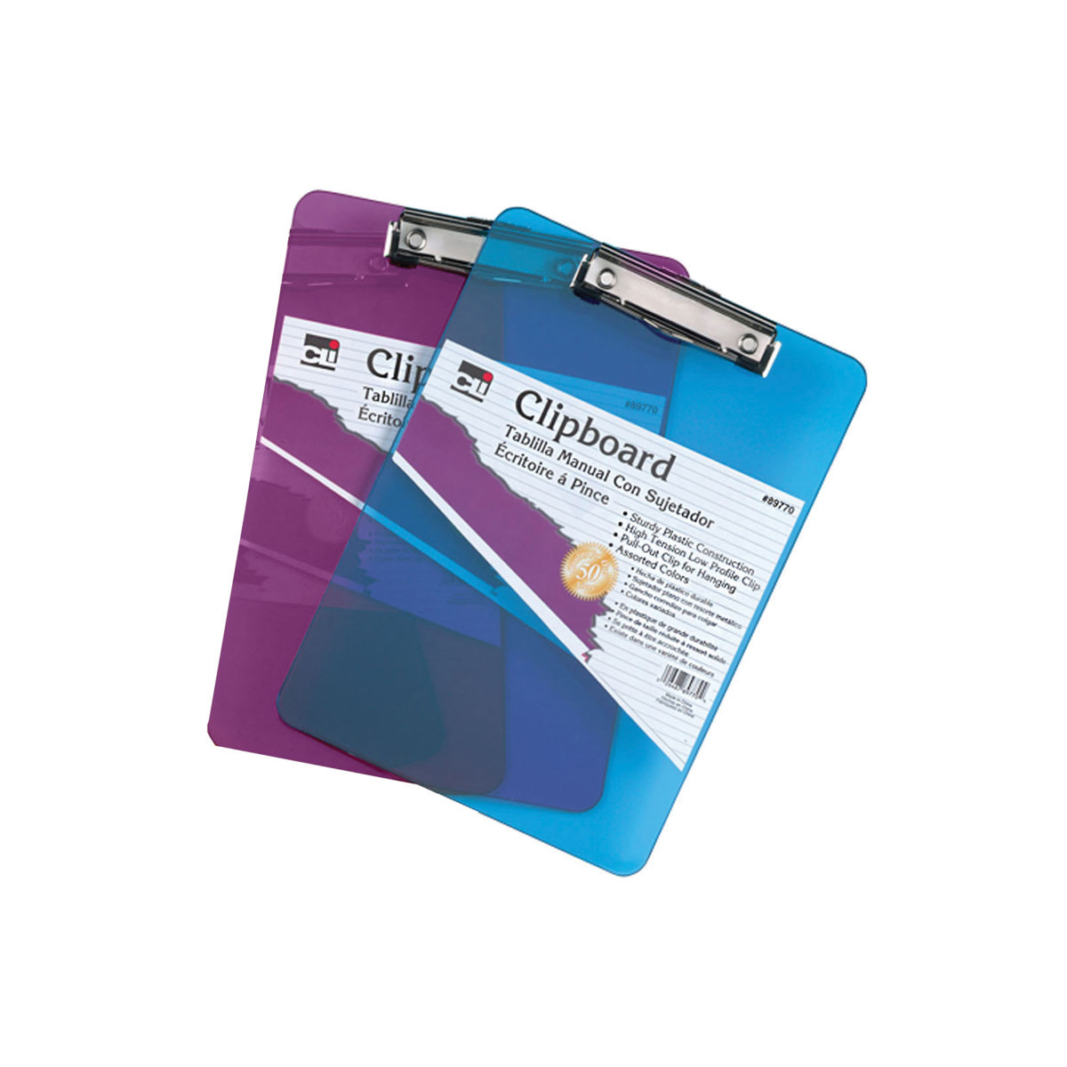 Brighten up your workspace with this tough, transparent clipboard, made from durable injection-molded plastic with smooth, comfortable edges. Designed in vibrant assorted neon colors, this clipboard adds a modern touch to any school, office, or home setting. It features a low-profile clip with rubber grips to hold papers securely in place without tearing. A built-in 12" ruler along the edge, with measurements in both inches and centimeters, adds extra convenience. Plus, the pull-out hook allows for easy hanging and storage. Sized to fit standard letter-size documents, this clipboard is both practical and stylish. Sold as a pack of 2 in Purple, Blue, Green, or Orange (color randomly selected).
