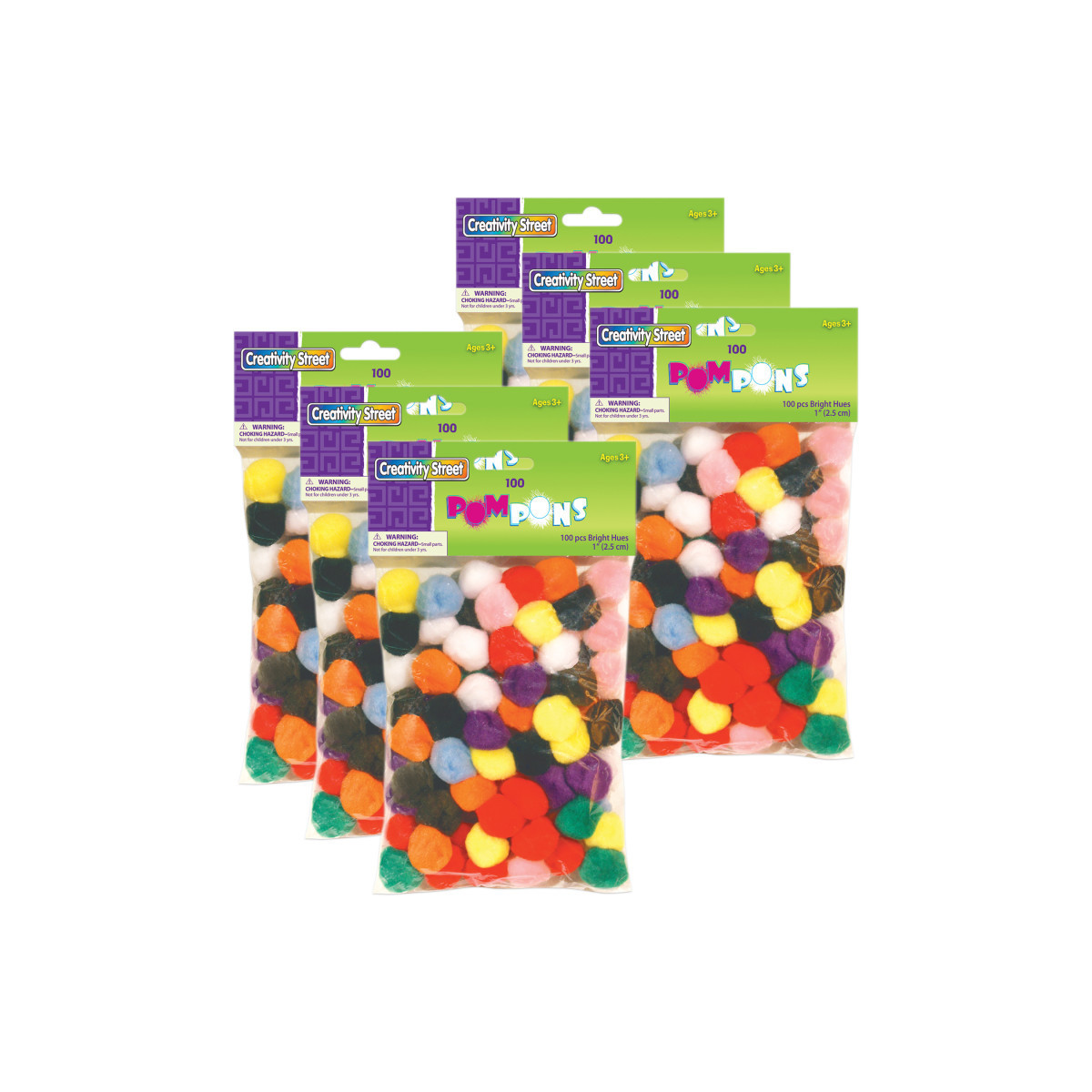 Bright & Colorful Assortment – Sold as 6 packs, each pack includes 100 soft, fluffy 1" poms in a vibrant mix of eye-catching hues.