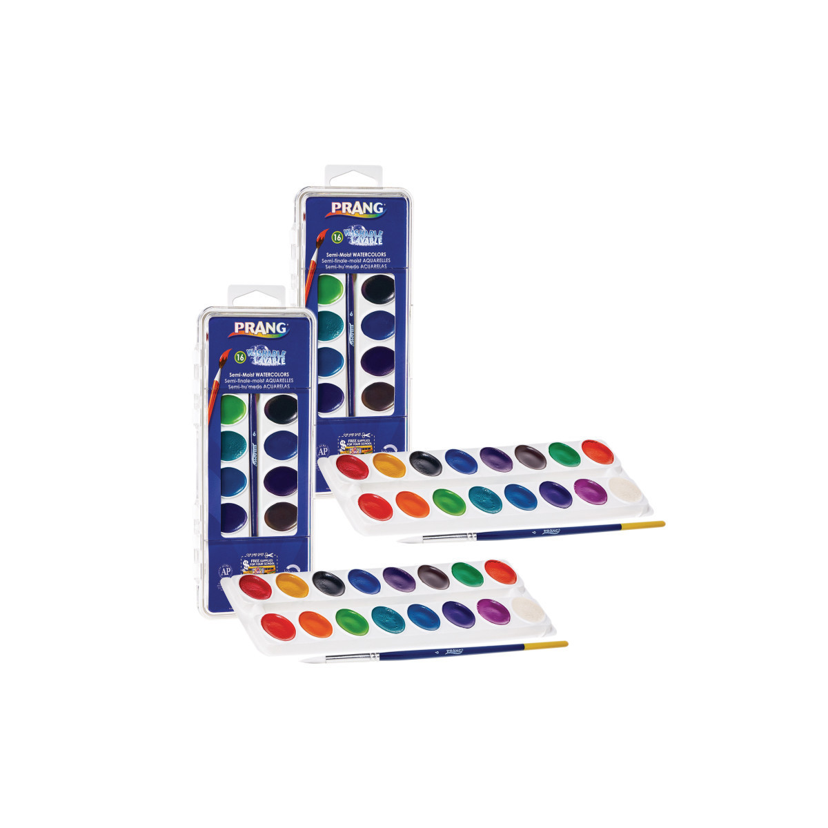 Bring your creativity to life with Prang's Washable Watercolor Set, featuring 16 vibrant, semi-moist colors made from a specialty blend of pure, wax-free pigments. Designed for smooth, rich color laydown and limitless artistic expression, this high-quality paint set is perfect for classrooms, daycares, or at-home projects. The colors wash easily from skin and clothing, making cleanup a breeze and ensuring worry-free painting for kids and adults alike. Housed in a durable case with built-in mixing areas and a top-quality size 6 paintbrush, this set offers everything you need to start painting right away. AP Certified and backed by the Prang Promise™, it's a safe and reliable choice for artists of all ages. Sold as a pack of 2 watercolor sets.