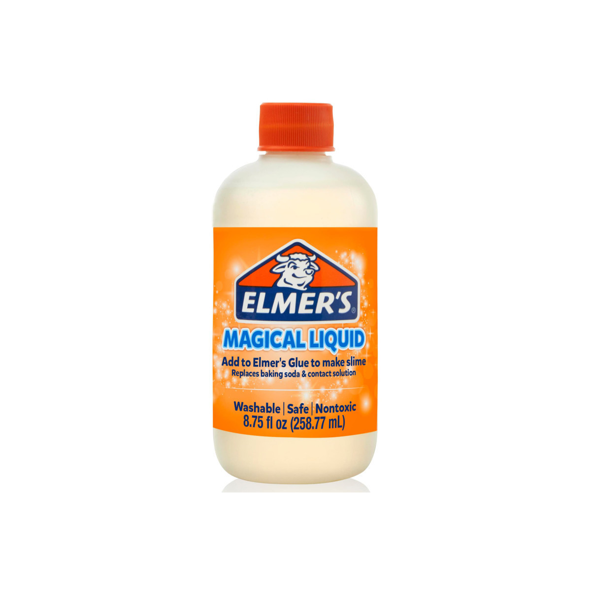 Want to make slime without the hassle? Just mix Elmer's Magical Liquid with Elmer's Glue to make multiple batches of perfectly gooey slime every time! It's the easy way to make glue slime at home with less mess and your ticket to family-friendly fun. Featuring an all-in-one formulation that has a washable, safe, and nontoxic formula, this solution transforms most Elmer's glue into slime without the need of contact lens solution and baking soda. Plus, this updated, stronger formula makes twice as much slime compared to the prior formula.
