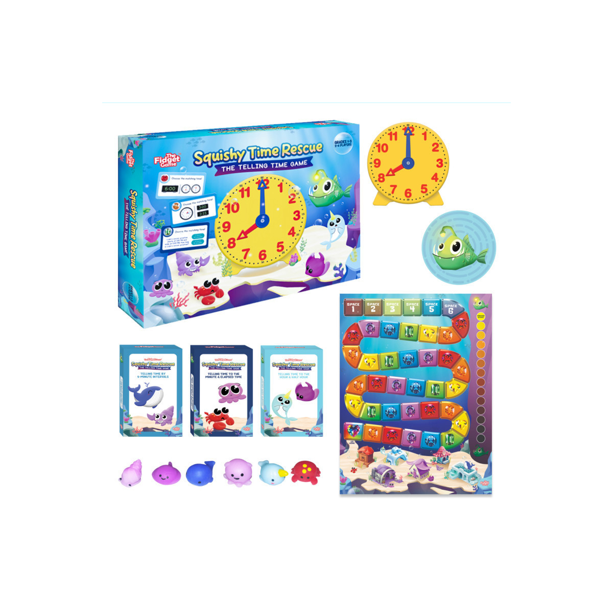 Make learning to tell time fun, hands-on, and stress-free with Squishy Time Rescue! This multisensory educational game uses squishies, a tactile fidget clock, and colorful visual cards to help kids master both analog and digital time. With three progressive card decks—covering hours, half hours, 5-minute intervals, exact minutes, and elapsed time—students gradually build confidence and fluency through play. Aligned with US State Standards and CA Provincial Standards, Squishy Time Rescue is perfect for introducing, reviewing, or reinforcing essential math concepts across multiple grade levels.