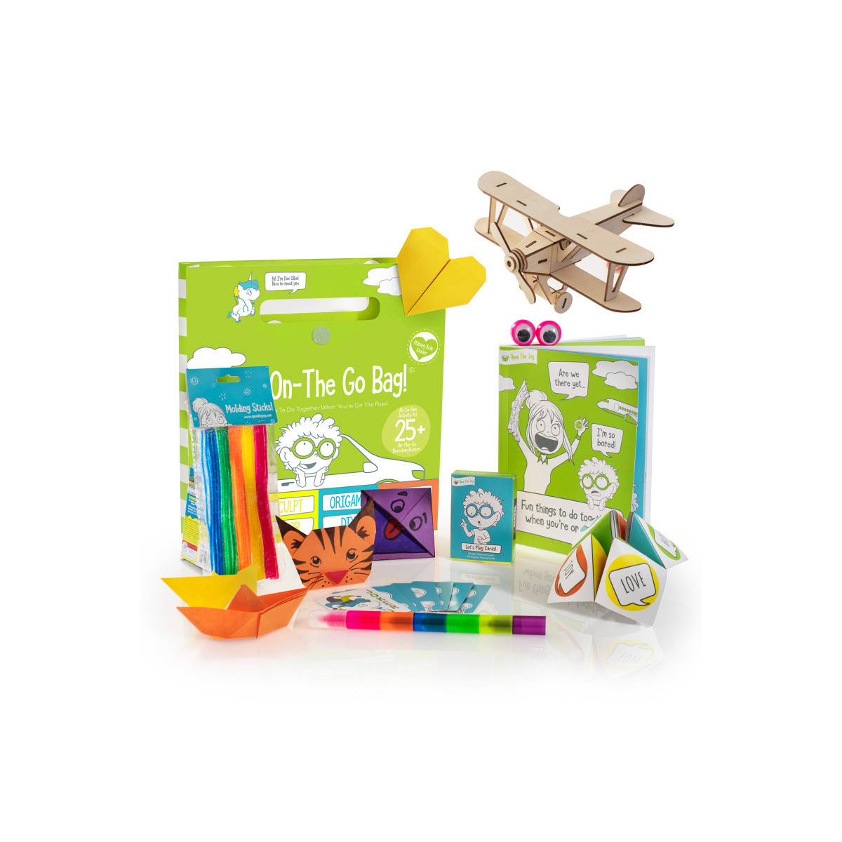 Turn any journey into an adventure with the On-the-Go Activity Bag, the ultimate travel companion for kids! Packed with over 25 boredom-busting activities, this all-in-one kit includes coloring, origami, magic tricks, molding sticks, playing cards, and even a DIY wooden plane construction project for hands-on fun. The 60+ page activity book is filled with jokes, riddles, games, and doodle sheets, ensuring hours of screen-free entertainment. Designed to boost creativity and build emotional intelligence, each activity also comes with a kindness mission, encouraging kids to practice empathy while they play. Perfect for cars, trains, planes, or hotel stays, this portable bag transforms any space into a mini activity center. Whether for solo play or family bonding, the On-the-Go Activity Bag keeps kids happy, engaged, and learning wherever the adventure takes them!