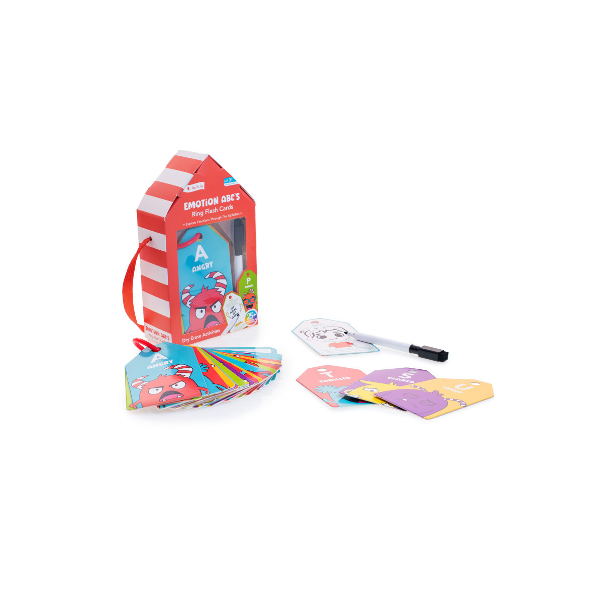 Includes: 30 vibrant illustrated cards each featuring a different emotion, letter and expressive character, 1 dry erase marker, 1 easy-clip ring and 25 dry erase activities to encourage focus and independence. The perfect resource for parents, educators and therapists seeking to help children's emotional, verbal and motor development through creative and interactive play. Great screen-free gift for children ages 3 and up