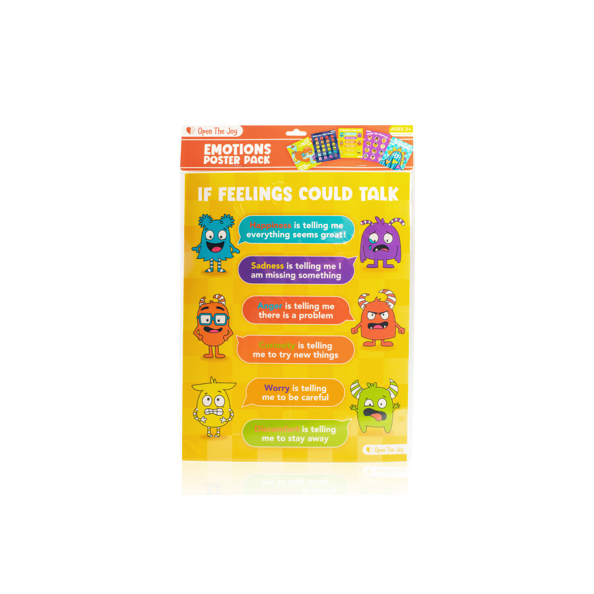 Help children explore their emotions and understand how feelings influence thoughts, actions, and behavior with this 5-Poster Emotions Pack. Each poster is laminated, brightly illustrated, and easy to understand, making it an engaging visual tool for young learners. Perfect for classrooms, therapy rooms, or home use, these posters encourage children to pause, reflect, and check in with their emotions throughout the day. Measuring 11" W x 14" H, each poster provides a clear and colorful reminder to help kids recognize and manage their feelings, building early emotional intelligence and self-awareness from ages 2 and up.