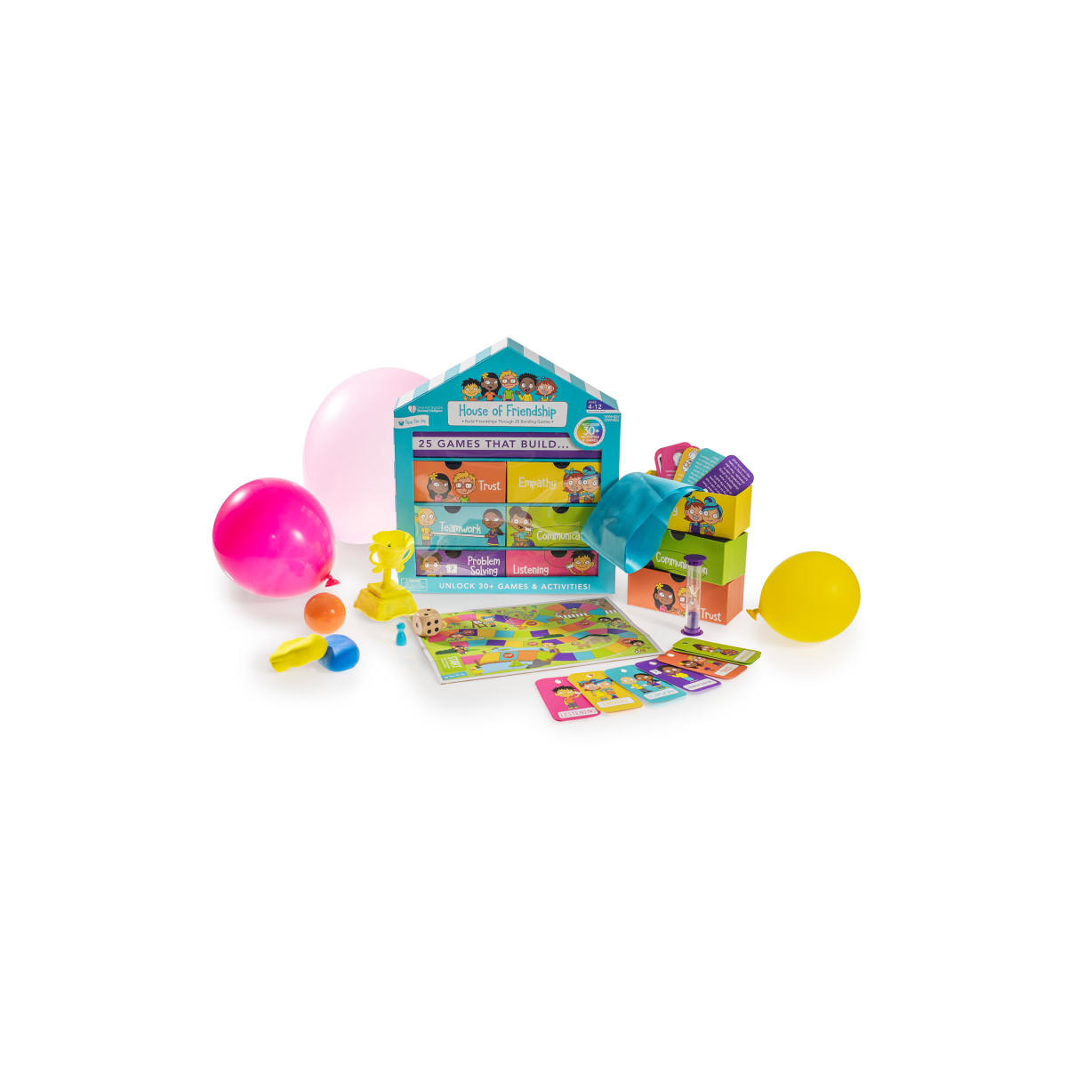 Welcome to Open The Joy's House of Friendship, where fun, teamwork, and laughter come together in one unforgettable adventure! This interactive friendship game set transforms playtime into a meaningful experience filled with cooperative challenges, mystery surprises, and engaging mini-games that celebrate the true meaning of friendship. Each colorful space on the game board reveals a surprise item and an activity designed to highlight important social skills such as empathy, communication, and cooperation. With 25 unique bonding games, children learn how to be kind, inclusive, and supportive while working together to complete fun challenges. Packaged in a whimsical, house-shaped box that doubles as a DIY playhouse or memory box, the House of Friendship makes the perfect addition to any classroom, family game night, or playdate. 100% screen-free and full of heart, this kit inspires creativity, strengthens social-emotional learning, and helps children build lasting connections through play.
