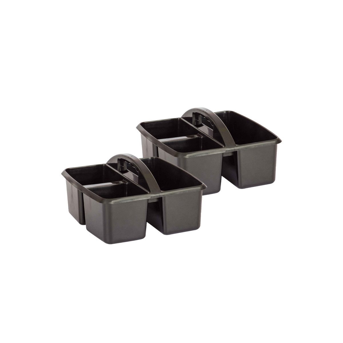 Keep your classroom, office, or home workspace organized with these durable plastic storage caddies. Designed with divided compartments, they're perfect for holding markers, calculators, timers, manipulatives, and other small items you need within easy reach. Whether used on desks, shelves, or carried from room to room, these handy totes make organization simple and efficient. Each caddy measures 9" L x 9-1/4" W x 5-1/4" H, offering ample space for supplies while remaining compact and easy to transport. Sold as a pack of 2 storage caddies.