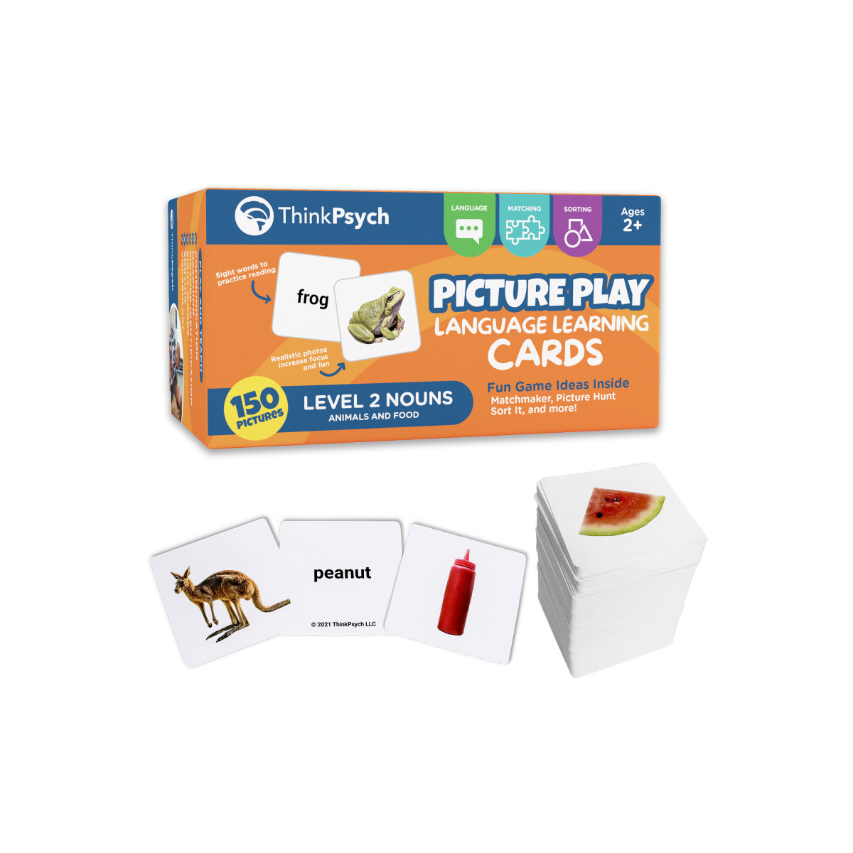Unlock your child's language potential with ThinkPsych Advanced Noun Picture Play Cards. Featuring 150 high-quality, real-life images of animals and foods, these preschool flash cards make learning engaging and effective for speech therapy. Crafted from durable, laminated cardstock, the cards include a sturdy case and a learning guide with four fun activities, turning this educational tool into an interactive experience. Developed by psychologists, these double-sided cards introduce pictures for speech therapy on one side and sight words on the other, supporting communication, vocabulary, and early reading skills in children of all abilities.