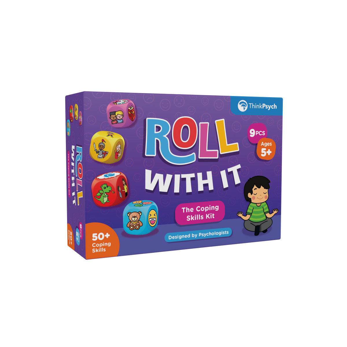 Transform how your child manages big emotions with Roll With It, a complete coping skills kit designed by leading U.S. child psychologists to make emotional learning engaging, practical, and fun. This 9-piece toolkit combines proven therapeutic techniques with playful interaction to help children recognize, understand, and regulate their feelings. At the center of the kit is our unique emotion dice system, featuring four colorful dice that represent common feelings—red for anger, blue for sadness, yellow for anxiety, and purple for boredom. When emotions feel overwhelming, kids simply roll the matching die to discover a healthy coping strategy, turning emotional regulation into an interactive game.