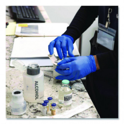 Nitrile gloves provide the best puncture and chemical resistance, are ideal for handling instruments, and are latex free to avoid aggravating latex sensitivities. Powder-free to eliminate messy residue. These gloves are tested to resist permeation against fentanyl for up to 240 minutes under the standard ASTM D6978.