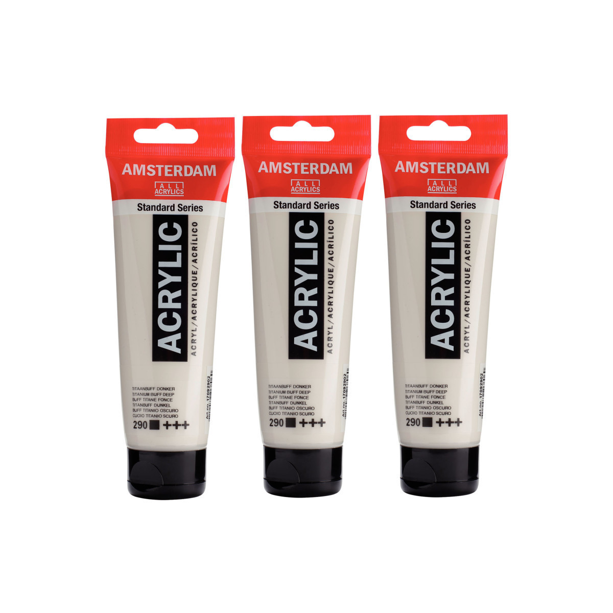 Amsterdam Standard Series acrylic paint in Titanium Buff Deep (290) is an opaque color with an excellent lightfastness. Our Standard Series offers you the broadest range of remarkably vibrant acrylic colors. This versatile paint is easy to work with and offers a smooth application. Use the paint straight from the tube or thinned with a little bit of water or one of our acrylic mediums. Medium viscosity paint for visible brush strokes, texture and smooth coverage with a satin finish. Made with high-quality, lightfast pigments. Formulated with 100% acrylic resin binder, resulting in an exceptionally durable and flexible paint film with a uniform degree of gloss. Odorless, water-based formula that becomes waterproof and permanent when dry. Extensive range of 102 colors available in 20ml and 120ml tubes, of which up to 90 colors are also available in larger sizes. The range of colors includes both traditional and modern colors such as reflex and metallic variants. Adheres to virtually any slightly porous surface, including canvas, paper, cardboard, wood, stone and cement. Proudly crafted in the Netherlands. Sold as a pack of 3.