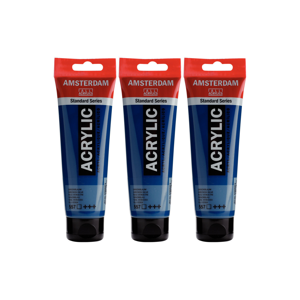 Amsterdam Standard Series acrylic paint in Greenish Blue (557) is a transparent color with an excellent lightfastness. Our Standard Series offers you the broadest range of remarkably vibrant acrylic colors. This versatile paint is easy to work with and offers a smooth application. Use the paint straight from the tube or thinned with a little bit of water or one of our acrylic mediums. Medium viscosity paint for visible brush strokes, texture and smooth coverage with a satin finish. Made with high-quality, lightfast pigments. Formulated with 100% acrylic resin binder, resulting in an exceptionally durable and flexible paint film with a uniform degree of gloss. Odorless, water-based formula that becomes waterproof and permanent when dry. Extensive range of 102 colors available in 20ml and 120ml tubes, of which up to 90 colors are also available in larger sizes. The range of colors includes both traditional and modern colors such as reflex and metallic variants. Adheres to virtually any slightly porous surface, including canvas, paper, cardboard, wood, stone and cement. Proudly crafted in the Netherlands. Sold as a pack of 3.