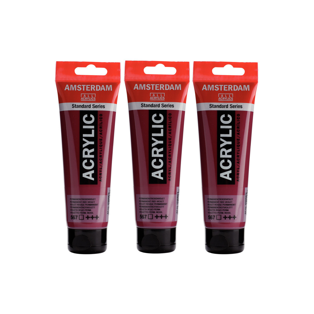 Amsterdam Standard Series acrylic paint in Permanent Red Violet (567) is a transparent color with an excellent lightfastness. Our Standard Series offers you the broadest range of remarkably vibrant acrylic colors. This versatile paint is easy to work with and offers a smooth application. Use the paint straight from the tube or thinned with a little bit of water or one of our acrylic mediums. Medium viscosity paint for visible brush strokes, texture and smooth coverage with a satin finish. Made with high-quality, lightfast pigments. Formulated with 100% acrylic resin binder, resulting in an exceptionally durable and flexible paint film with a uniform degree of gloss. Odorless, water-based formula that becomes waterproof and permanent when dry. Extensive range of 102 colors available in 20ml and 120ml tubes, of which up to 90 colors are also available in larger sizes. The range of colors includes both traditional and modern colors such as reflex and metallic variants. Adheres to virtually any slightly porous surface, including canvas, paper, cardboard, wood, stone and cement. Proudly crafted in the Netherlands. Sold as a pack of 3.