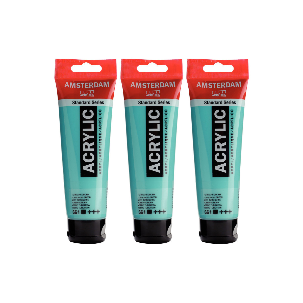 Amsterdam Standard Series acrylic paint in Turquoise Green (661) is an opaque color with an excellent lightfastness. Our Standard Series offers you the broadest range of remarkably vibrant acrylic colors. This versatile paint is easy to work with and offers a smooth application. Use the paint straight from the tube or thinned with a little bit of water or one of our acrylic mediums. Medium viscosity paint for visible brush strokes, texture and smooth coverage with a satin finish. Made with high-quality, lightfast pigments. Formulated with 100% acrylic resin binder, resulting in an exceptionally durable and flexible paint film with a uniform degree of gloss. Odorless, water-based formula that becomes waterproof and permanent when dry. Extensive range of 102 colors available in 20ml and 120ml tubes, of which up to 90 colors are also available in larger sizes. The range of colors includes both traditional and modern colors such as reflex and metallic variants. Adheres to virtually any slightly porous surface, including canvas, paper, cardboard, wood, stone and cement. Proudly crafted in the Netherlands. Sold as a pack of 3.
