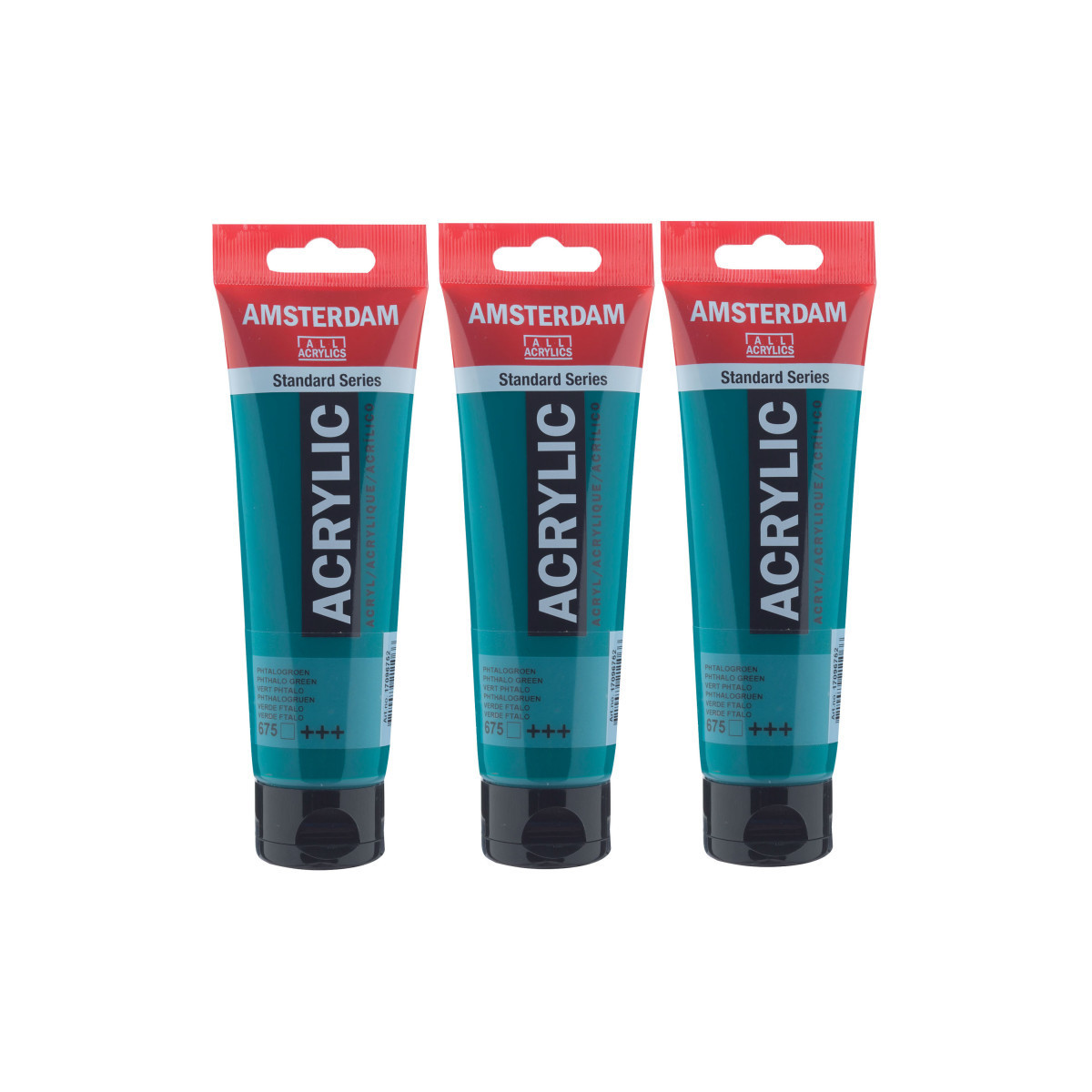 Amsterdam Standard Series acrylic paint in Phthalo Green (675) is a transparent color with an excellent lightfastness. Our Standard Series offers you the broadest range of remarkably vibrant acrylic colors. This versatile paint is easy to work with and offers a smooth application. Use the paint straight from the tube or thinned with a little bit of water or one of our acrylic mediums. Medium viscosity paint for visible brush strokes, texture and smooth coverage with a satin finish. Made with high-quality, lightfast pigments. Formulated with 100% acrylic resin binder, resulting in an exceptionally durable and flexible paint film with a uniform degree of gloss. Odorless, water-based formula that becomes waterproof and permanent when dry. Extensive range of 102 colors available in 20ml and 120ml tubes, of which up to 90 colors are also available in larger sizes. The range of colors includes both traditional and modern colors such as reflex and metallic variants. Adheres to virtually any slightly porous surface, including canvas, paper, cardboard, wood, stone and cement. Proudly crafted in the Netherlands. Sold as a pack of 3.
